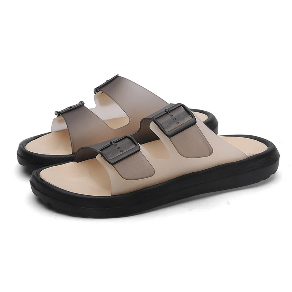 Повседневные мужские удобные нескользящие пляжные туфли с открытым носком на низком каблуке; Дышащие однотонные туфли с пряжкойШлёпанцы для женщин
