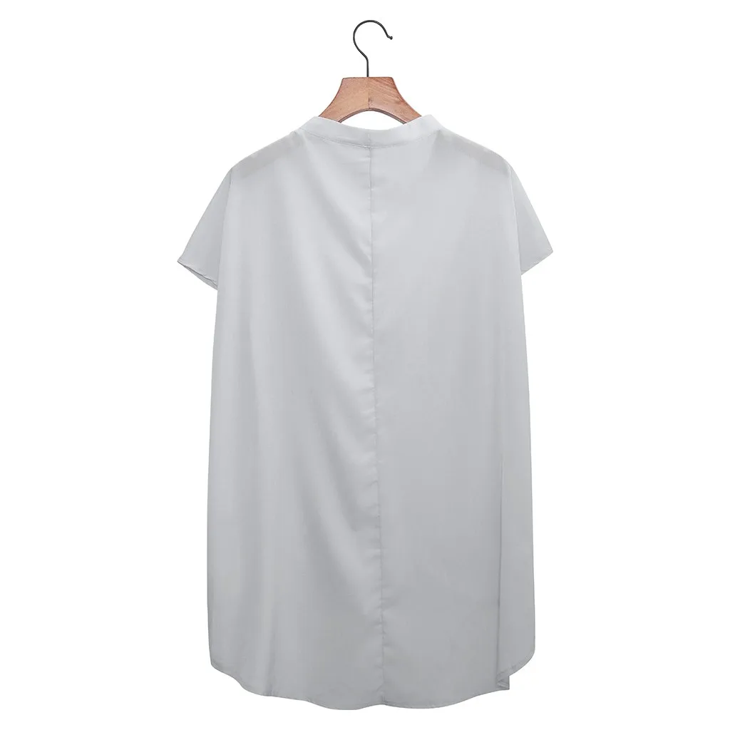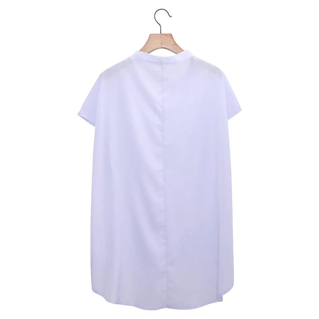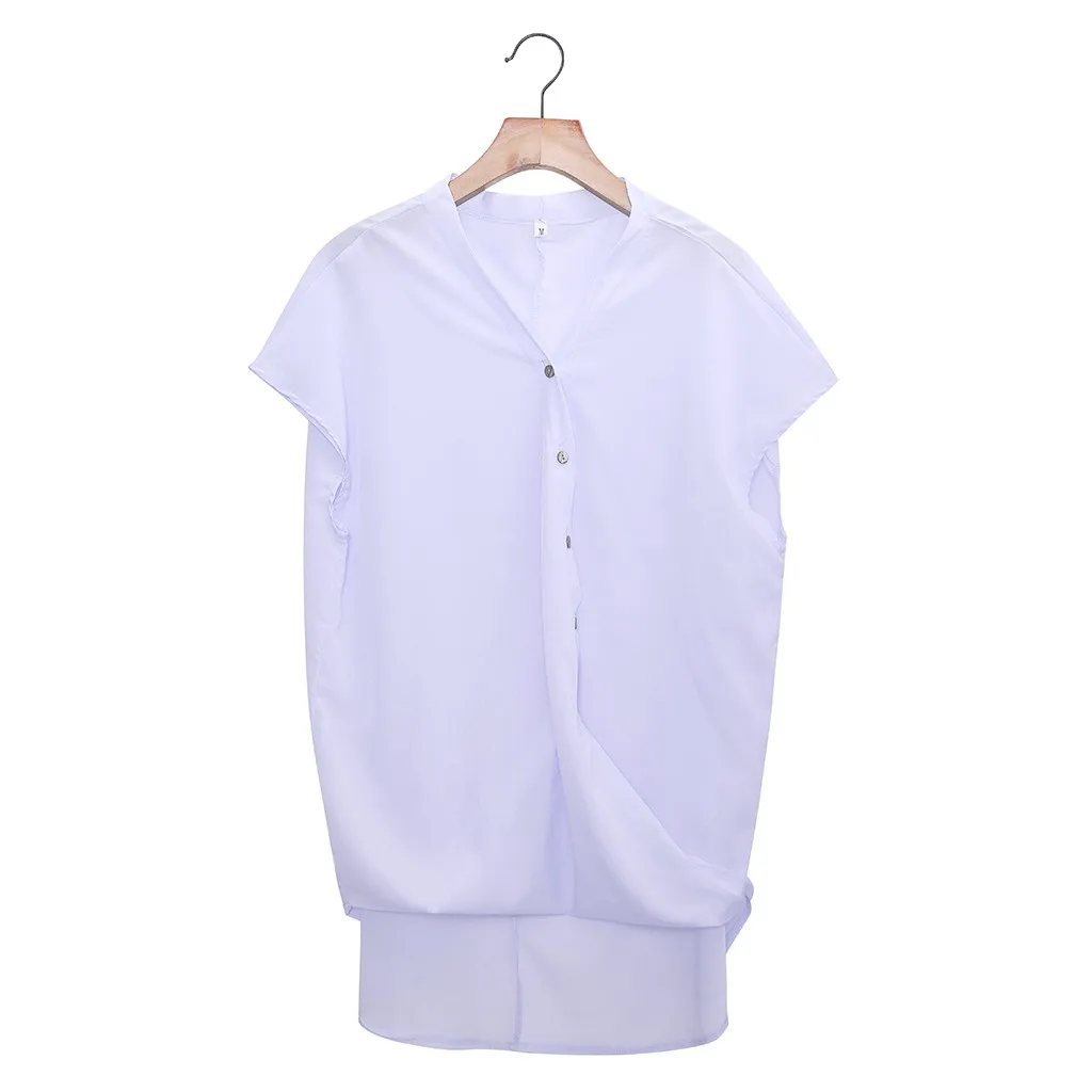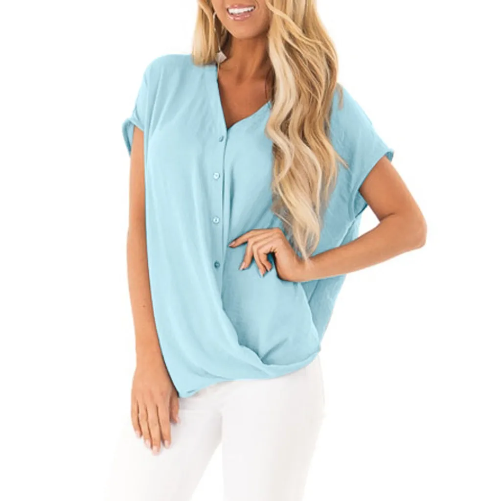 Женская летняя шифоновая блузка с коротким рукавом, повседневные свободные топы с v-образным вырезом и пуговицами