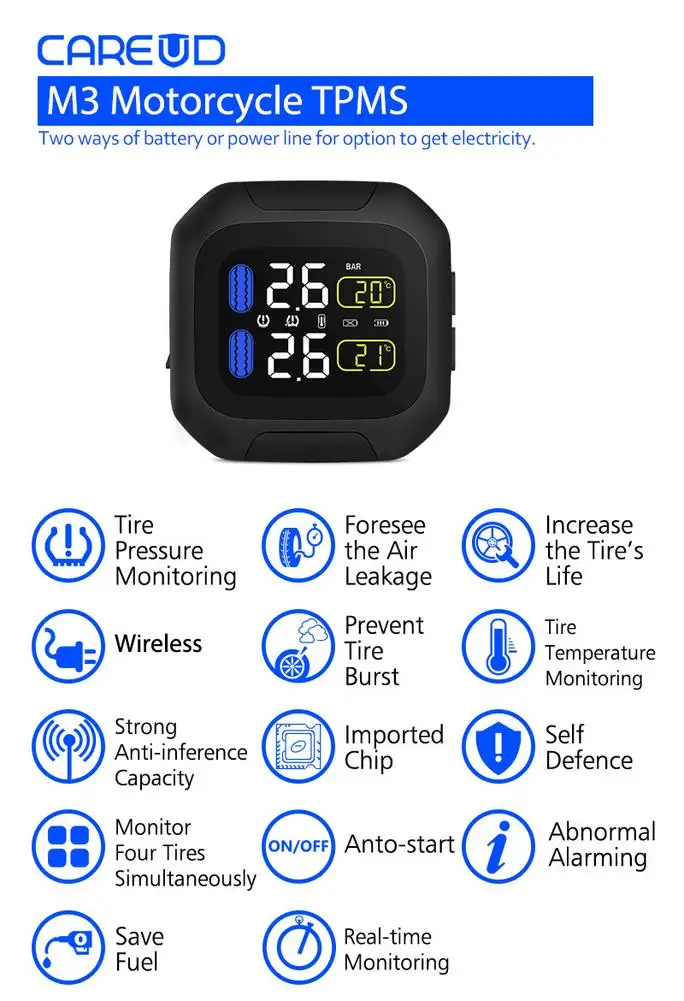 4. Быстро Обнаруживает утечку и сигнал тревоги, продлевает срок службы шин, балансирует давление в шинах, обеспечивает безопасность мотоциклов