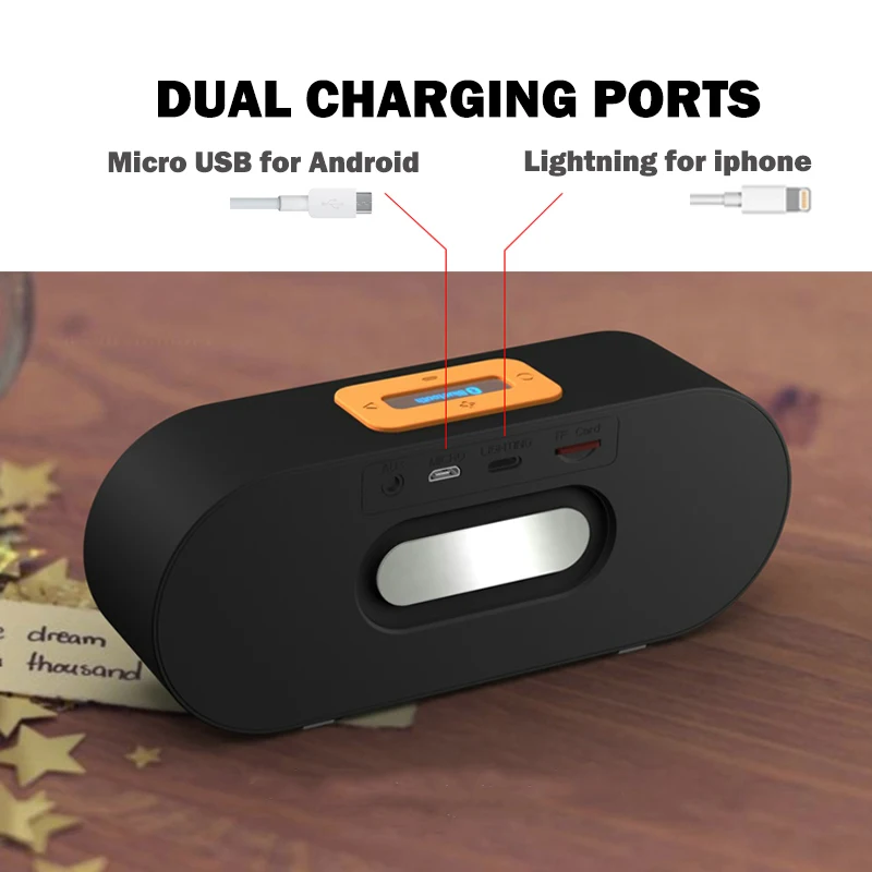 Особенности Глубокие басы HD 3 Вт ватт громкоговорители с 40 мм Премиум драйверами для активного наружного и внутреннего использования Встроенный порт aux 3,5 мм позволяет Arikasen подключаться к мультимедийным устройствам с возможностью Bluetooth или без него Bluetooth 4,1 Аудио Беспроводное подключение с бесшовной потоковой передачей, 4 часа воспроизведения 40 мм динамик драйвер выход с глубокими басами и кристально чистым звуком Модный и стильный дизайн с твердой производительностью и универсальной совместимостью для Android, iPhone, iPad, планшетов, смартфонов, ipod, MP3, MP4, радиоплееров, и другие цифровые проигрыватели с поддержкой Bluetooth или мультимедийные устройства с портом aux Параметры Встроенный 3,5 мм аудио порт для проводного или Bluetooth 4,1 беспроводного подключения Время в режиме воспроизведения: до 12 часов проводного и 8 часов с Bluetooth беспроводное соединение Драйвер динамика: 40 мм Время зарядки: 2,5-3,5 часов Диапазон подключения: 33 фута Рабочая частота: 2,4-2,48 ГГц Аккумулятор: встроенный перезаряжаемый 3,7 в 2000 Литий-ионный аккумулятор мАч Вес единицы: 11 унций Размер: 160x40x65 мм Динамик: стерео, 40 мм, 4ом Размер диафрагмы LF: 25*40 мм Соотношение сигнал/шум: ≥80 дБ Искажение: ≤0. 1% Большой динамик внутри для отличного звукового эффекта Пассивный сабвуфер внутри обеспечивает выдающиеся басы Состояние аккумулятора может отображаться на iPhone Что в коробке Стерео динамик Arikasen Bluetooth 4,2 Руководство пользователя Микро USB кабель для зарядки 3,5 мм аудио кабель