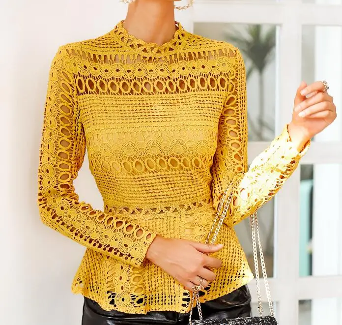 Элегантная кружевная открытая блуза с баской, женская рубашка с оборками и длинным рукавом, Женская белая блузка, осенне-зимние топы, офисные женские