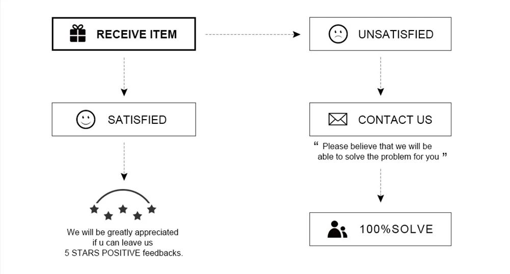 Мы стремимся к общей детальной оценке продавца (DSR) из 5 звезд положительных отзывов от каждого ценного клиента. Это побудит нас предложить Вам лучшее обслуживание. Если вы планируете дать нейтральный или отрицательный отзывы или низкий DSR, пожалуйста, свяжитесь с нами и дайте нам возможность решить ваши проблемы в первую очередь. Спасибо за понимание.