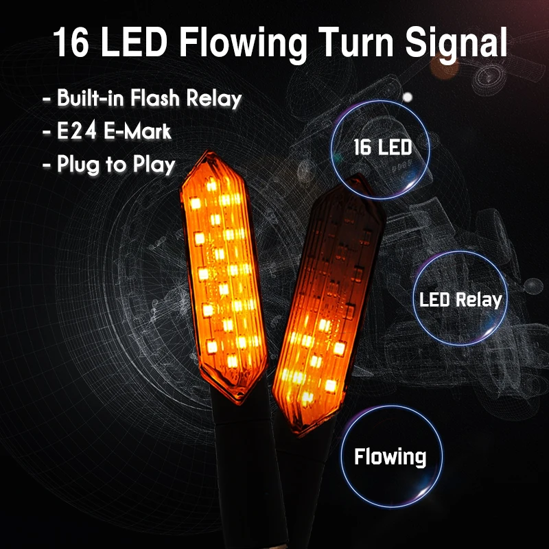 2 шт. мотоциклетные указатели поворота E-Mark E24, светодиодный мигающий сигнал, встроенное реле струйной воды, 16 Светодиодный мигалка, автоматические индикаторы