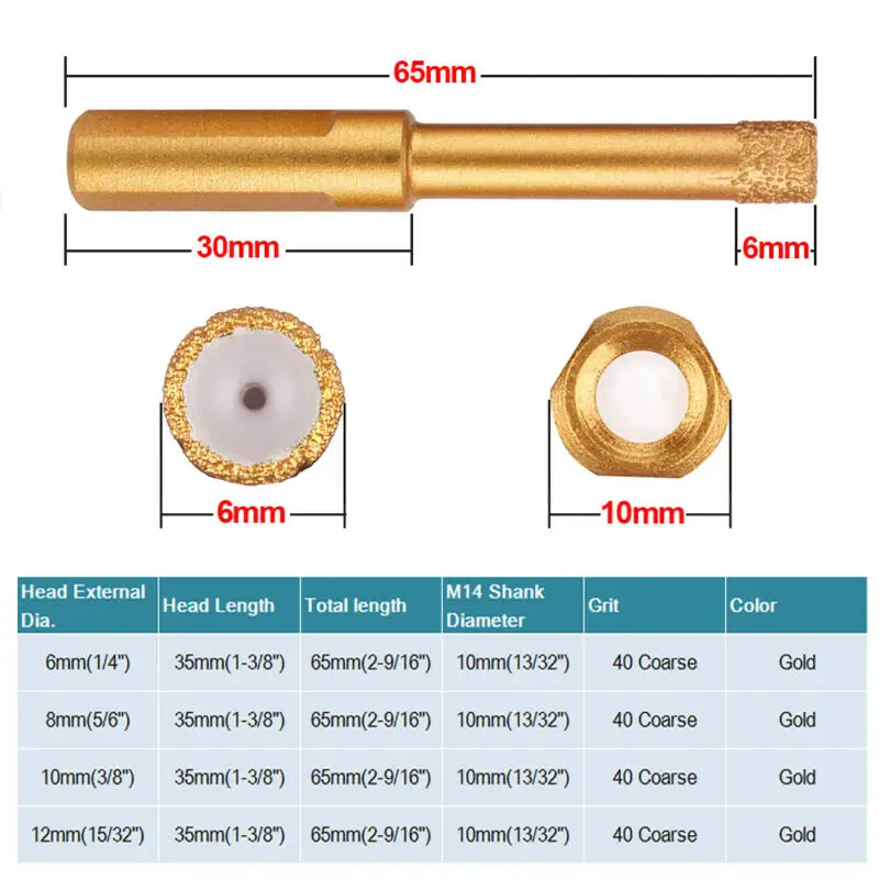 * 6/8/10/12 мм M14ПаяныеАлмазное сверло Золотое для плитки мраморная угловая шлифовальная машина