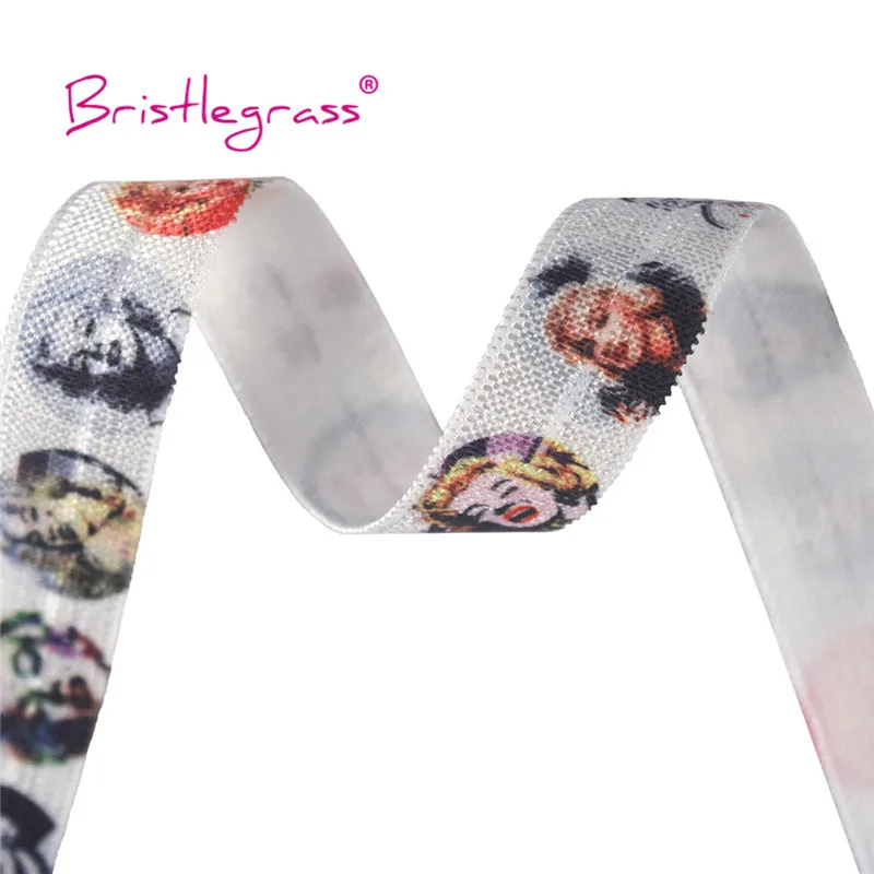 Оптовая продажа 50 ярдов 5/8 дюйма 15 мм Принт Мэрилин Монро эластичная атласная
