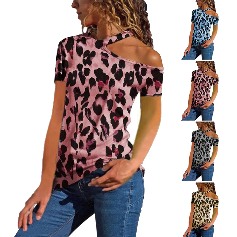 * Описание товара: сексуальный, с одним плечом, с леопардовым принтом, с коротким рукавом, облегающий крой