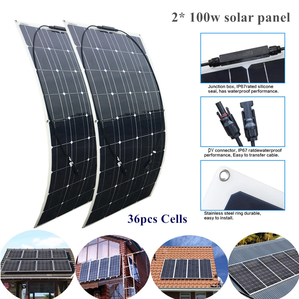 2*100 Вт солнечная панель 1 * 12В/24В/20А ШИМ контроллер 1 комплект кабеля pv 3 м (2,5 мм?/14 AWG) 1 комплект кабеля аллигатора 3 м (2,5 мм?/14 AWG) 1 Набор 2 в 1 pv адаптер