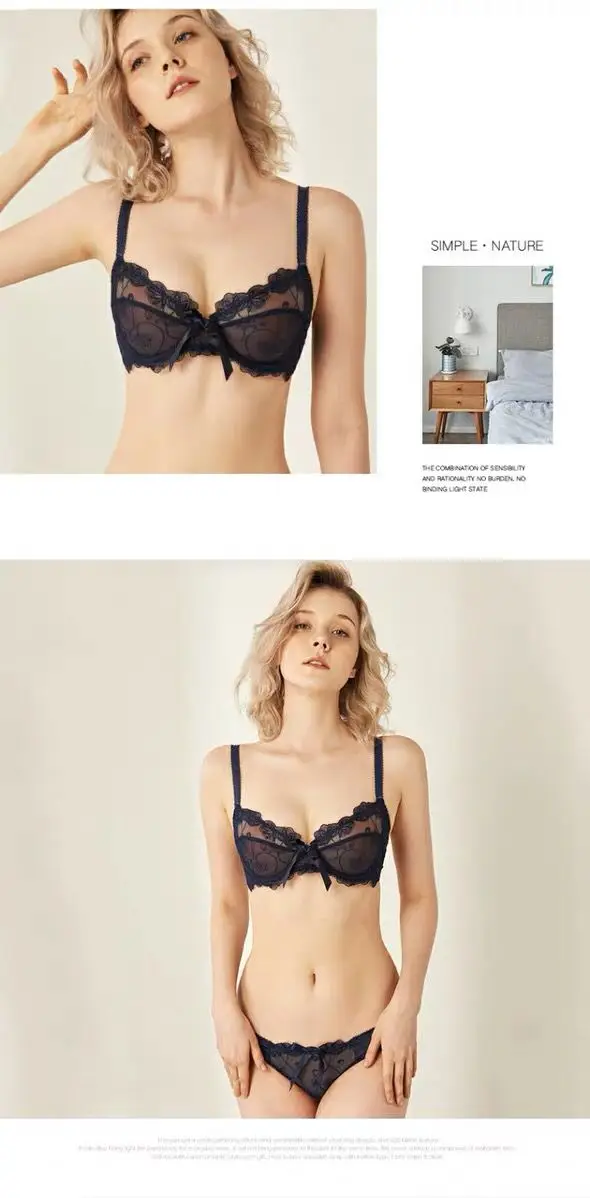 Женское нижнее белье кружевное тонкое дышащее без стального кольца с глубоким v