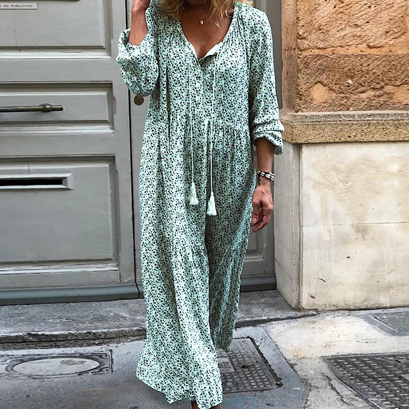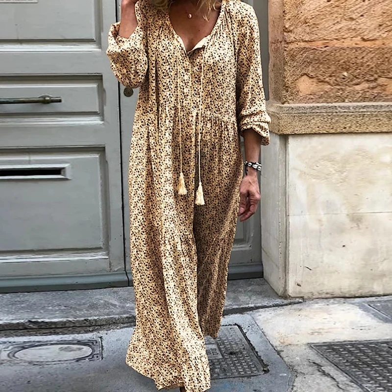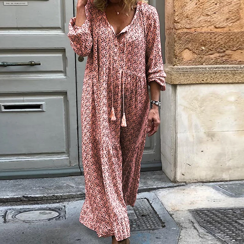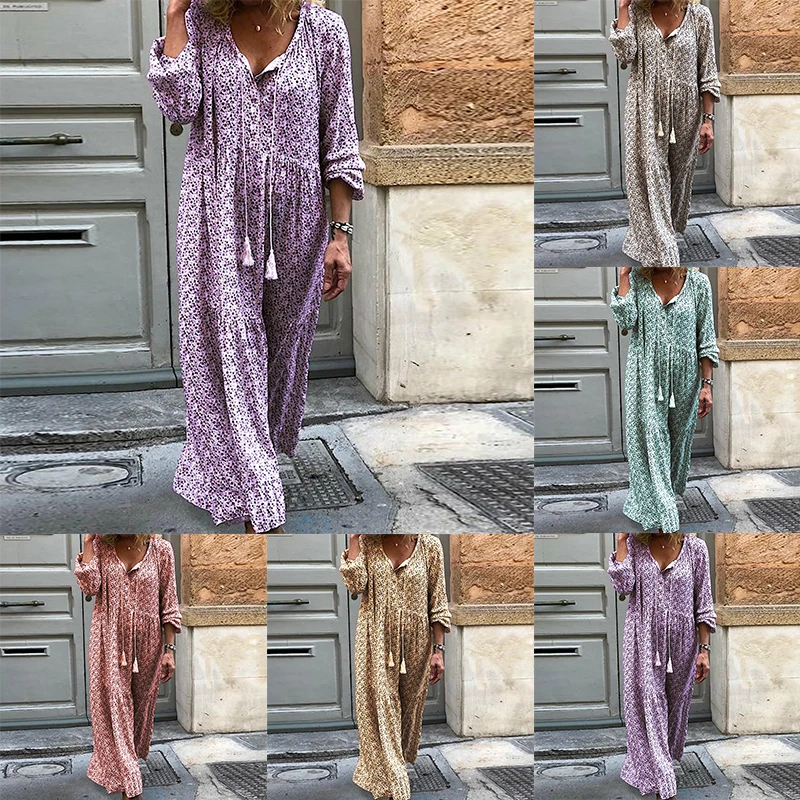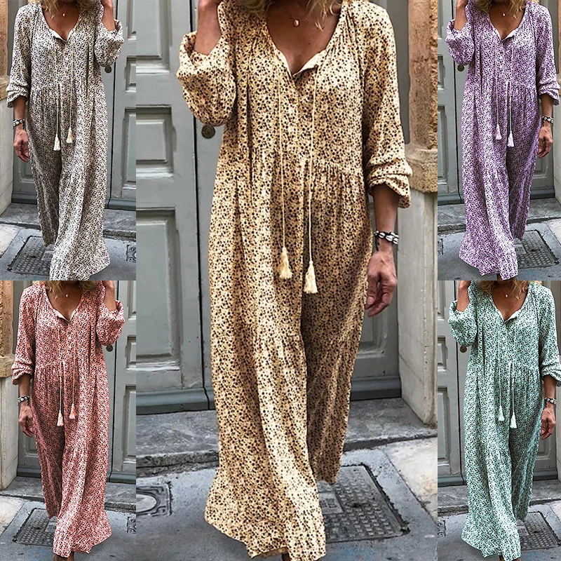* Описание товара: Женский, богемный, цветочный принт, длинный рукав, v-образный вырез, свободный, Повседневный, вечерние