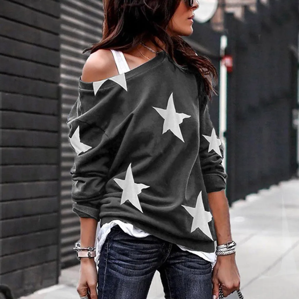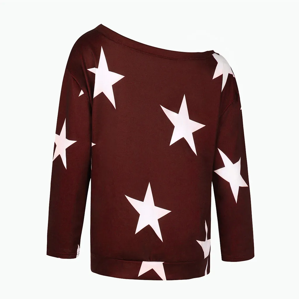 Женские рубашки с длинным рукавом и принтом звезды с открытыми плечами больших размеров Свободные повседневные блузки