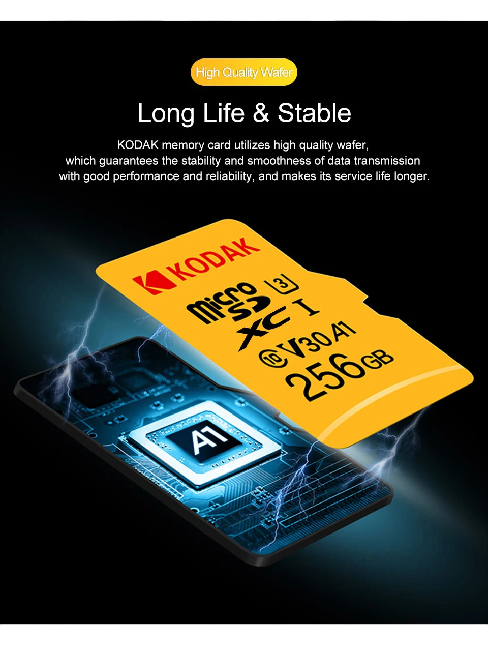 Карта памяти KODAK использует Высококачественная пластина, которая гарантирует стабильность и гладкость передачи данных с хорошей производительностью и надежностью и делает ее срок службы более продолжительным.