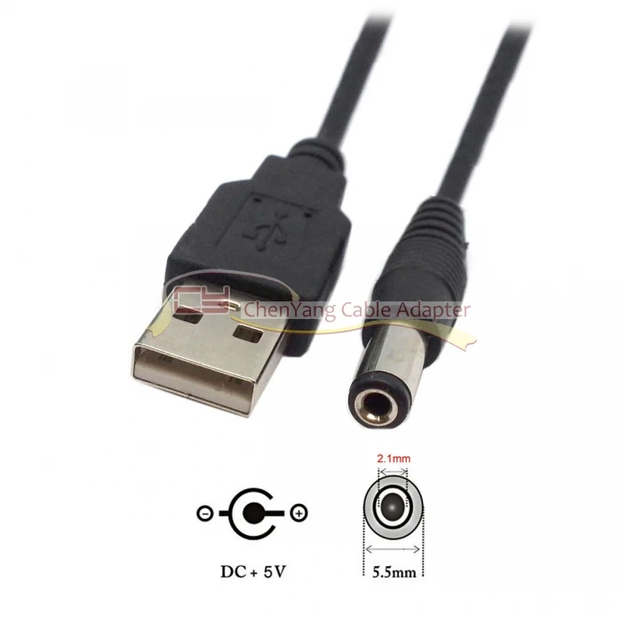 USB 2,0 A Тип Мужской до 5,5x2,1 мм DC 5V Мощность Plug Цилиндрический разъем зарядный кабель с разъемом