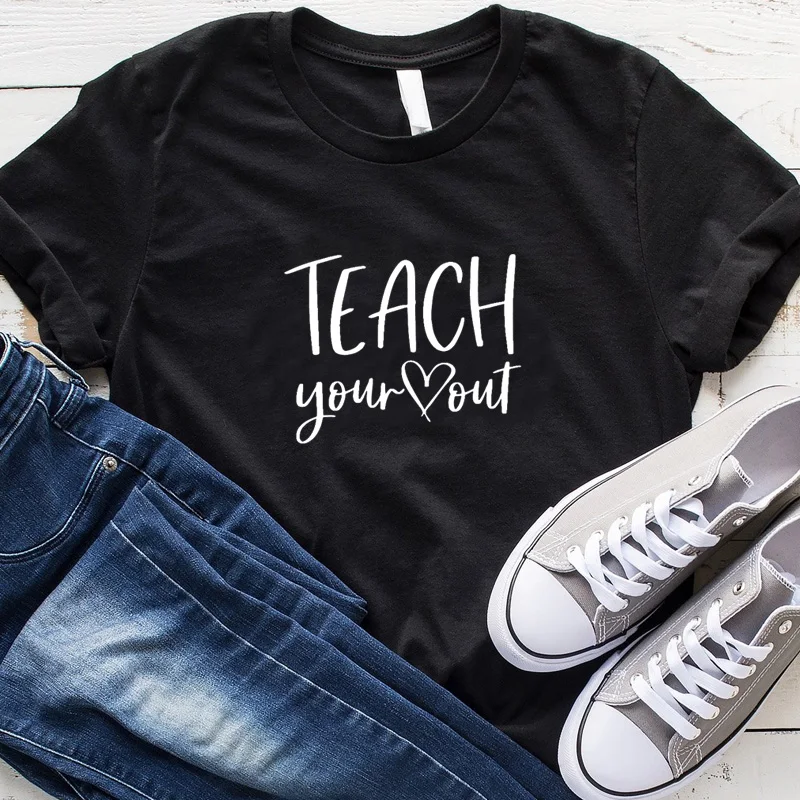 Приучите свое сердце, забавная футболка, эстетичный подарок на День учителя, футболки, женские хлопковые футболки с коротким рукавом, хипстерские топы для девочек, Прямая поставка
