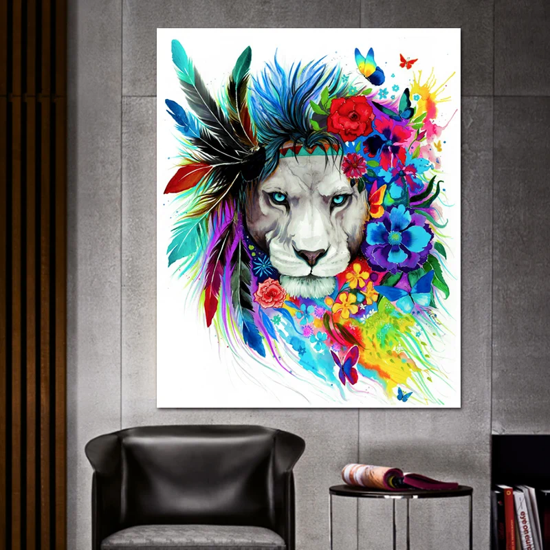 Картина на холсте акварелью, принт с животными, плакат со львом, картины для гостиной на стене, украшение в скандинавском стиле