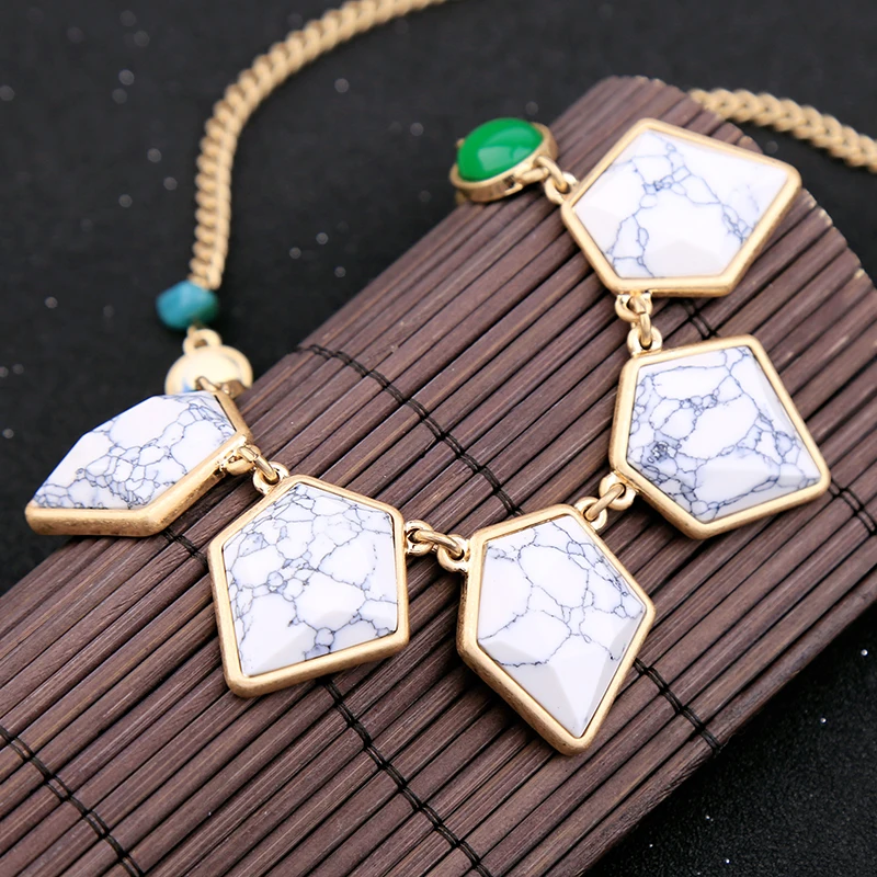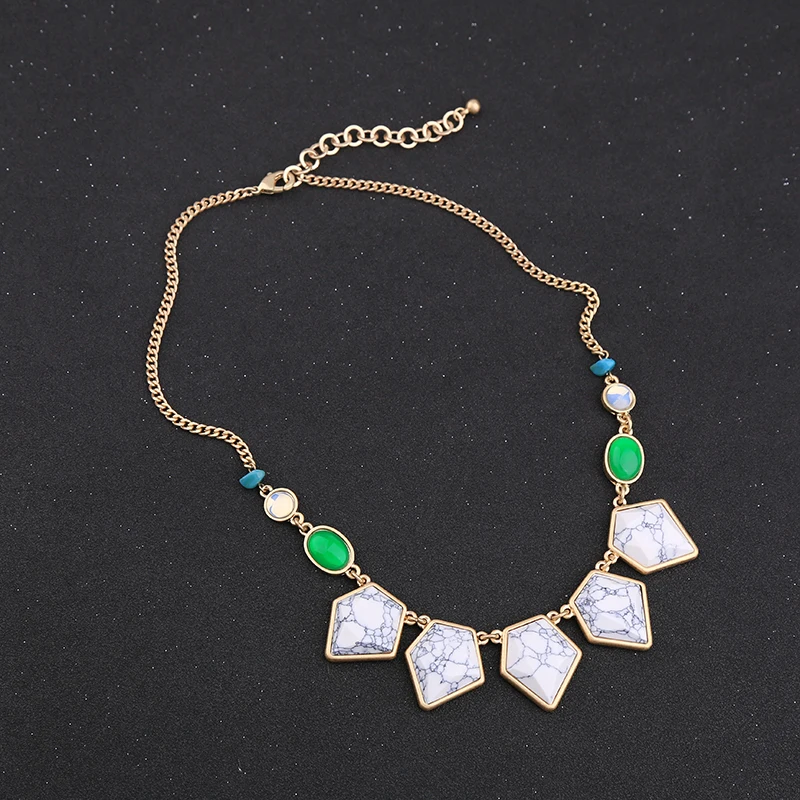 Геометрическое Мраморное ожерелье с синтетическими камнями 2019 Уникальные антикварные золотые цветные цепочки женские Модные Ювелирные изделия Новое поступление