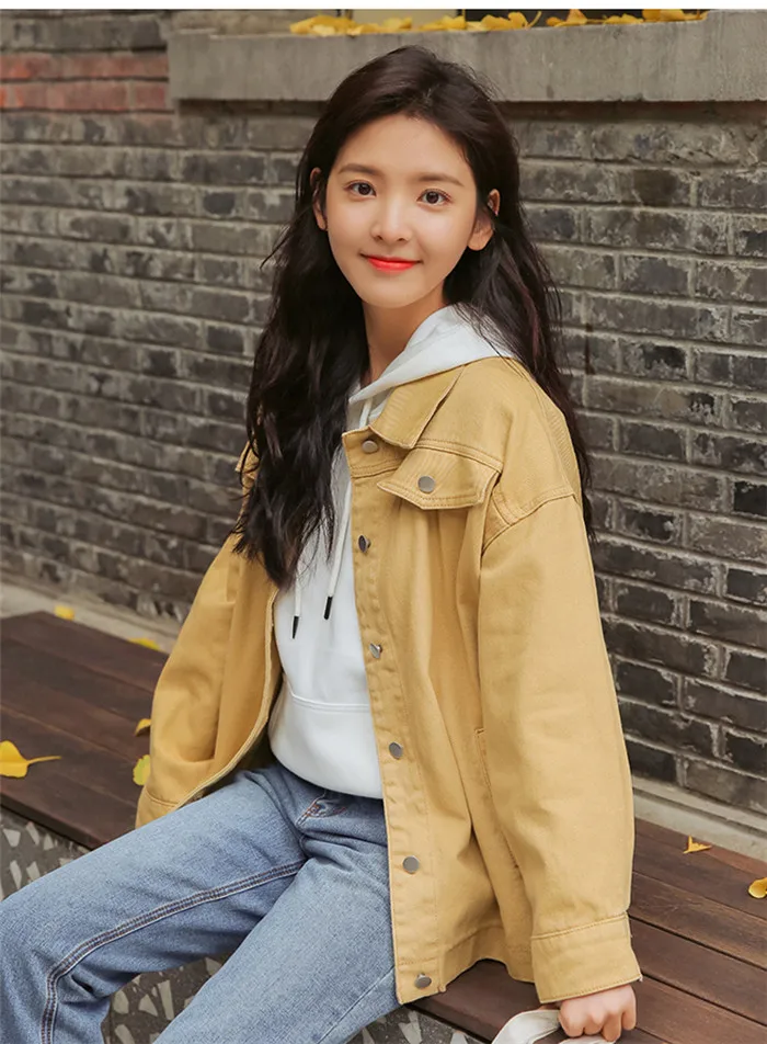 Женская джинсовая куртка в стиле бойфренда, короткая однобортная Свободная куртка в стиле ретро, весна 2019, DDD23