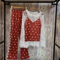 Женская шелковая пижама с длинными рукавами, Сексуальная атласная пижама на бретельках + кружевная рубашка + брюки, домашняя одежда для сна из 3 предметов, весна 2019USD 44,36/Шт.