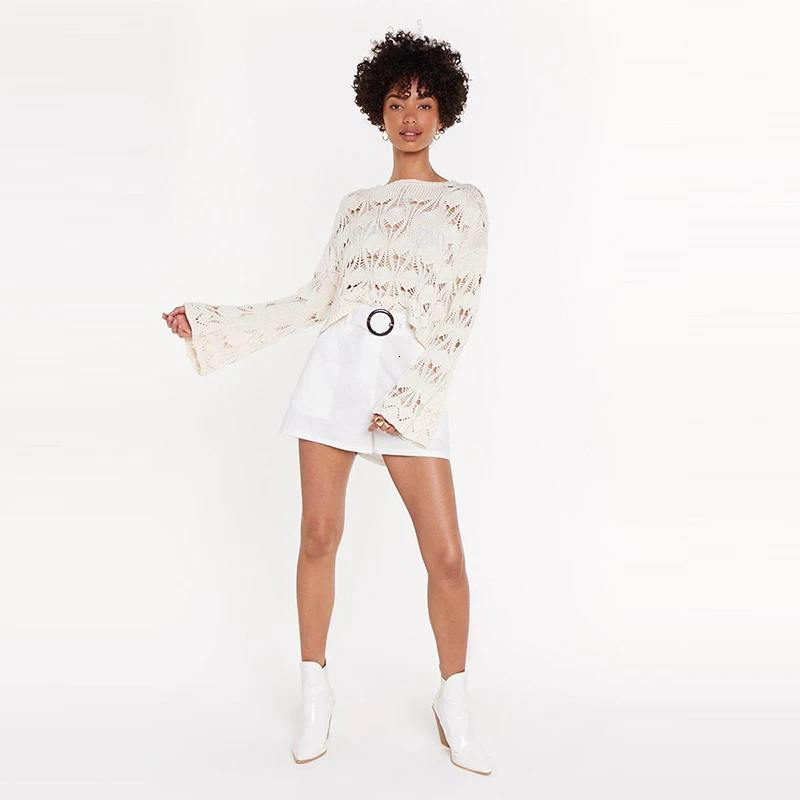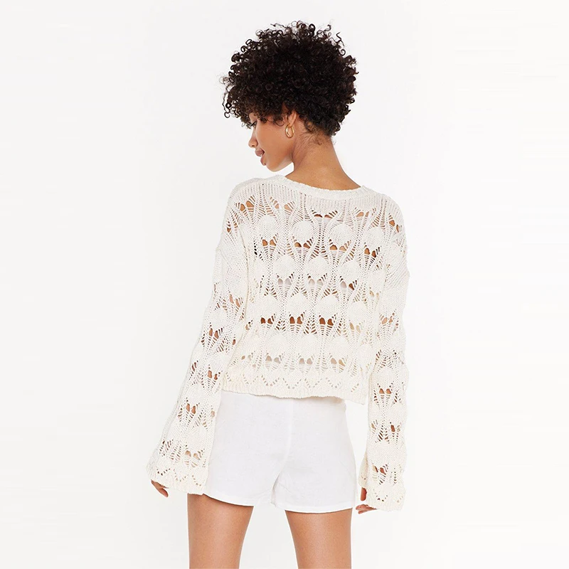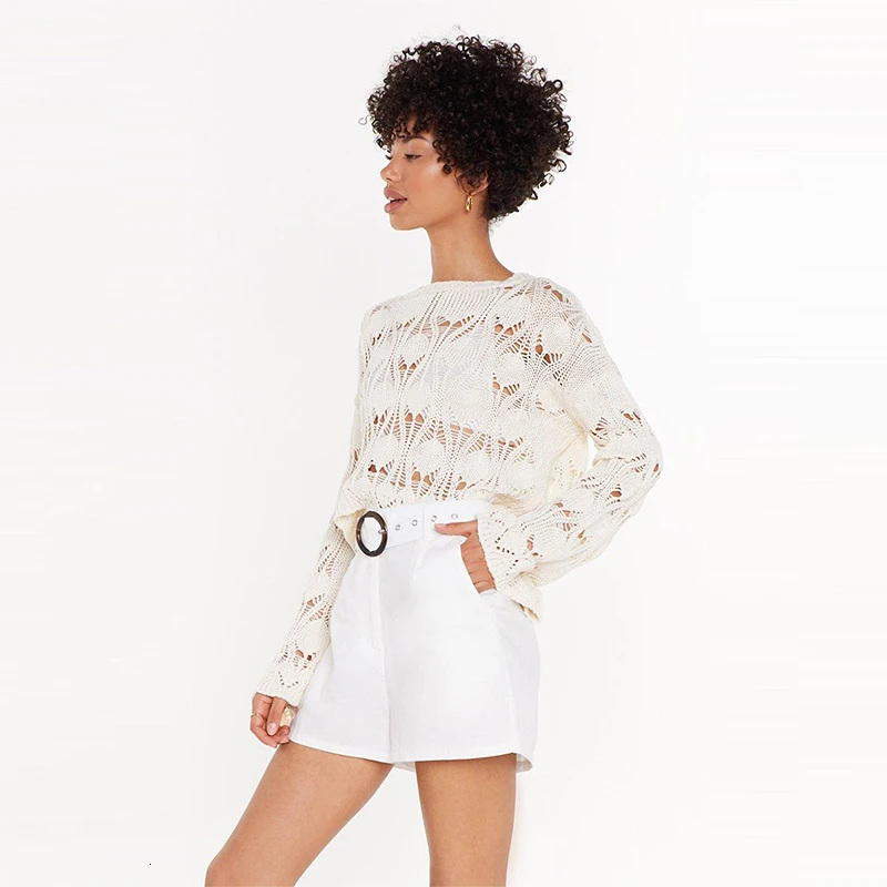Женский однотонный пляжный свитер HDY Haoduoyi свободная труба свободного кроя с