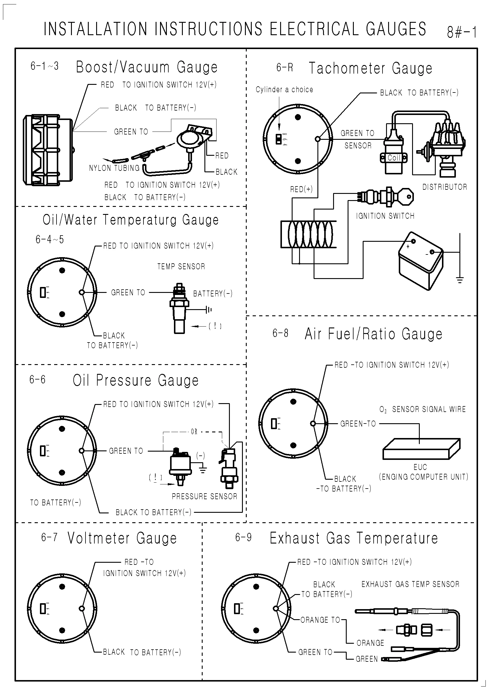Примечание: Эти измерители являются шаговыми двигателями и должны быть включены, чтобы вернуть к нулю. Это нормально, что указатель не возвращается к нулю.