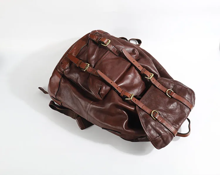 Рюкзак мужской из бычьей кожи модный многофункциональный ранец для ноутбука на