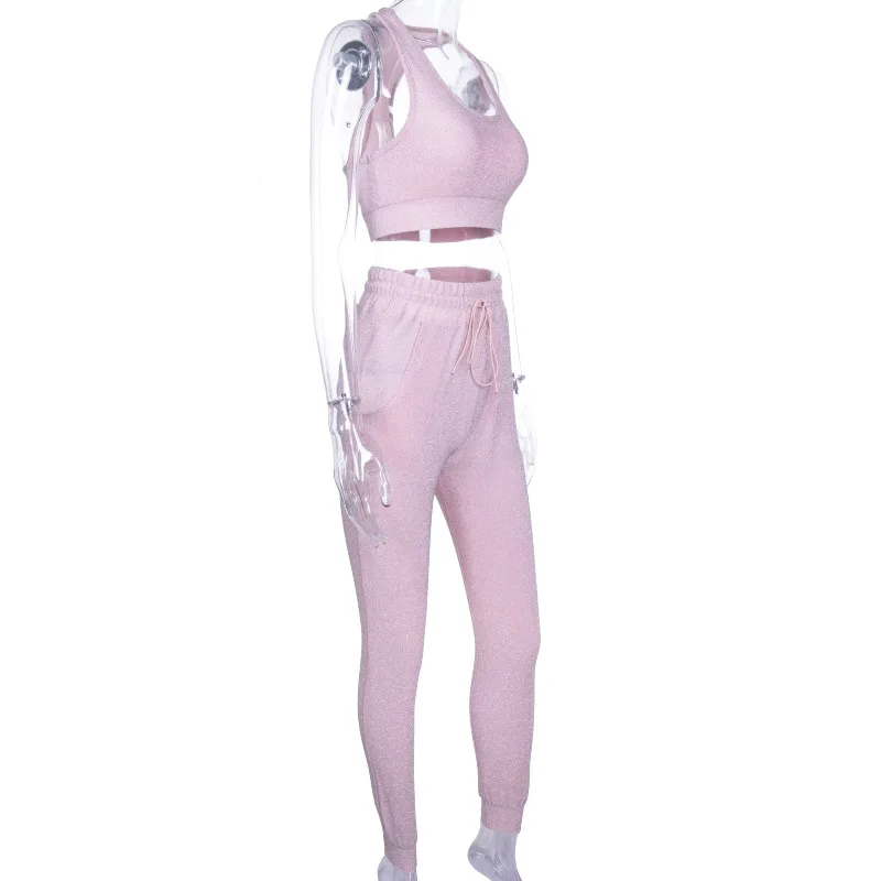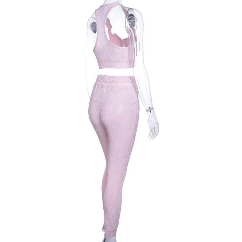 2019 осенне зимний женский костюм с блестками Топ длинным рукавом брюки карандаш