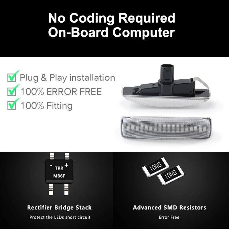 Каждый светильник имеет 18 высококачественных янтарных светодиодных чипов, в 10 раз ярче, чем на складе, боковые маркеры ламп накаливания. Этот светодиодный габаритный фонарь позволяет всем входящим автомобилям знать, что вы направляетесь в путь. Обновите Заводские боковые марочные линзы с новым и современным дизайном, который дополняет внешний вид вашего автомобиля.