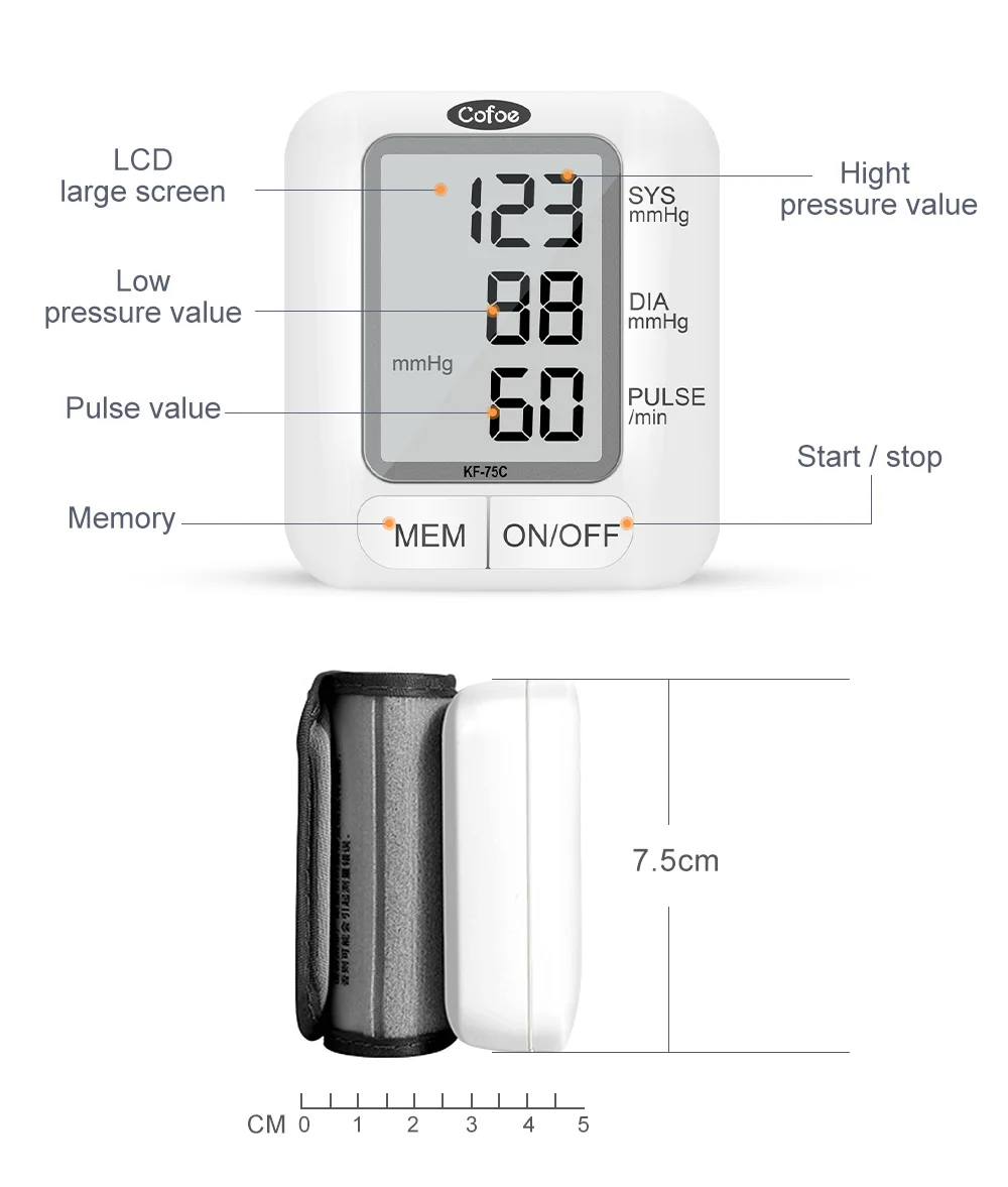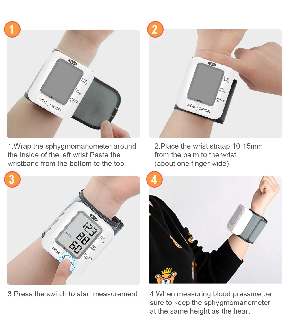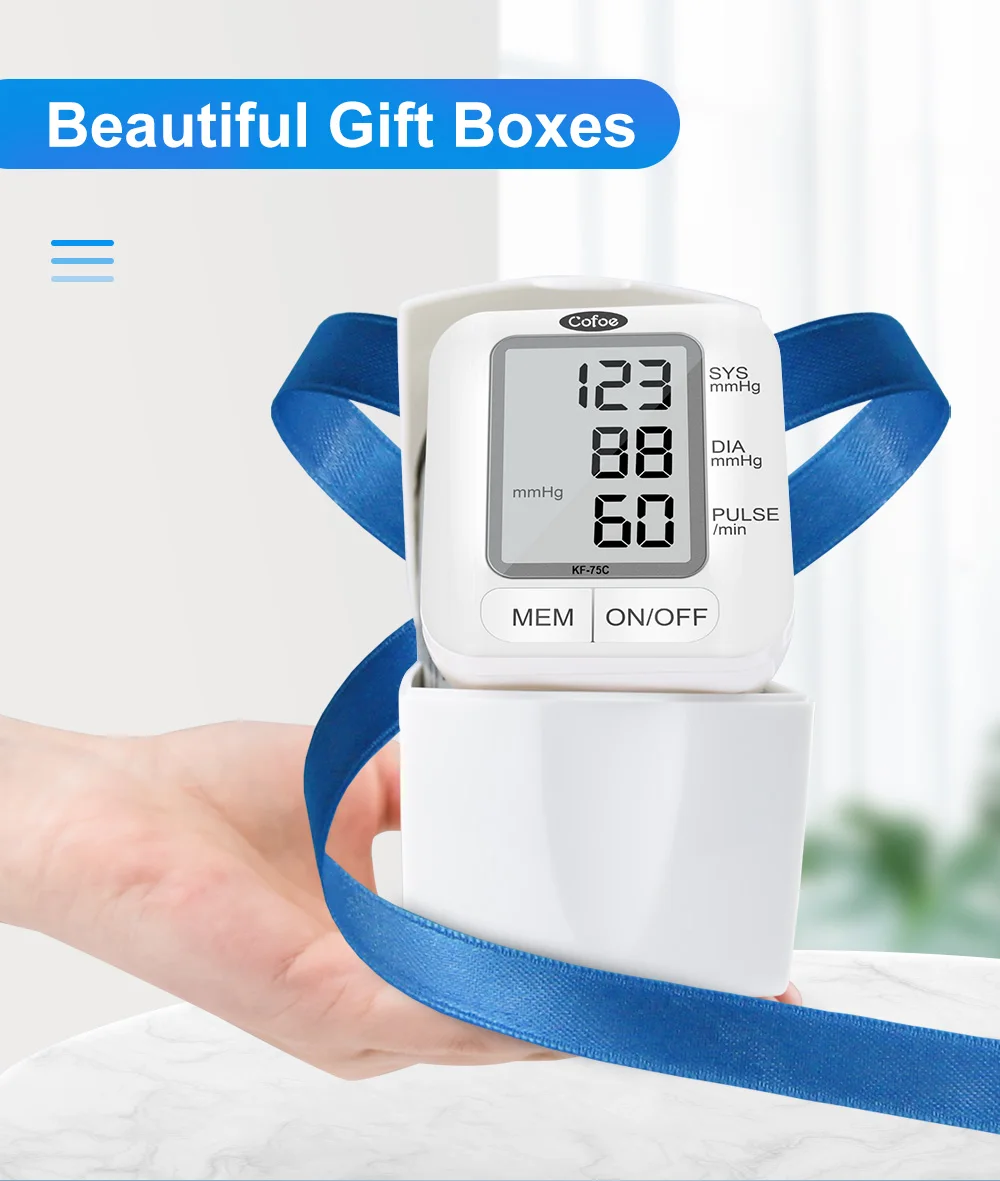 Cofoe Портативный наручные кровяное давление монитор Automatic Автоматические цифровые часы и пульс Mhttonitor KF-75C забота о здоровье