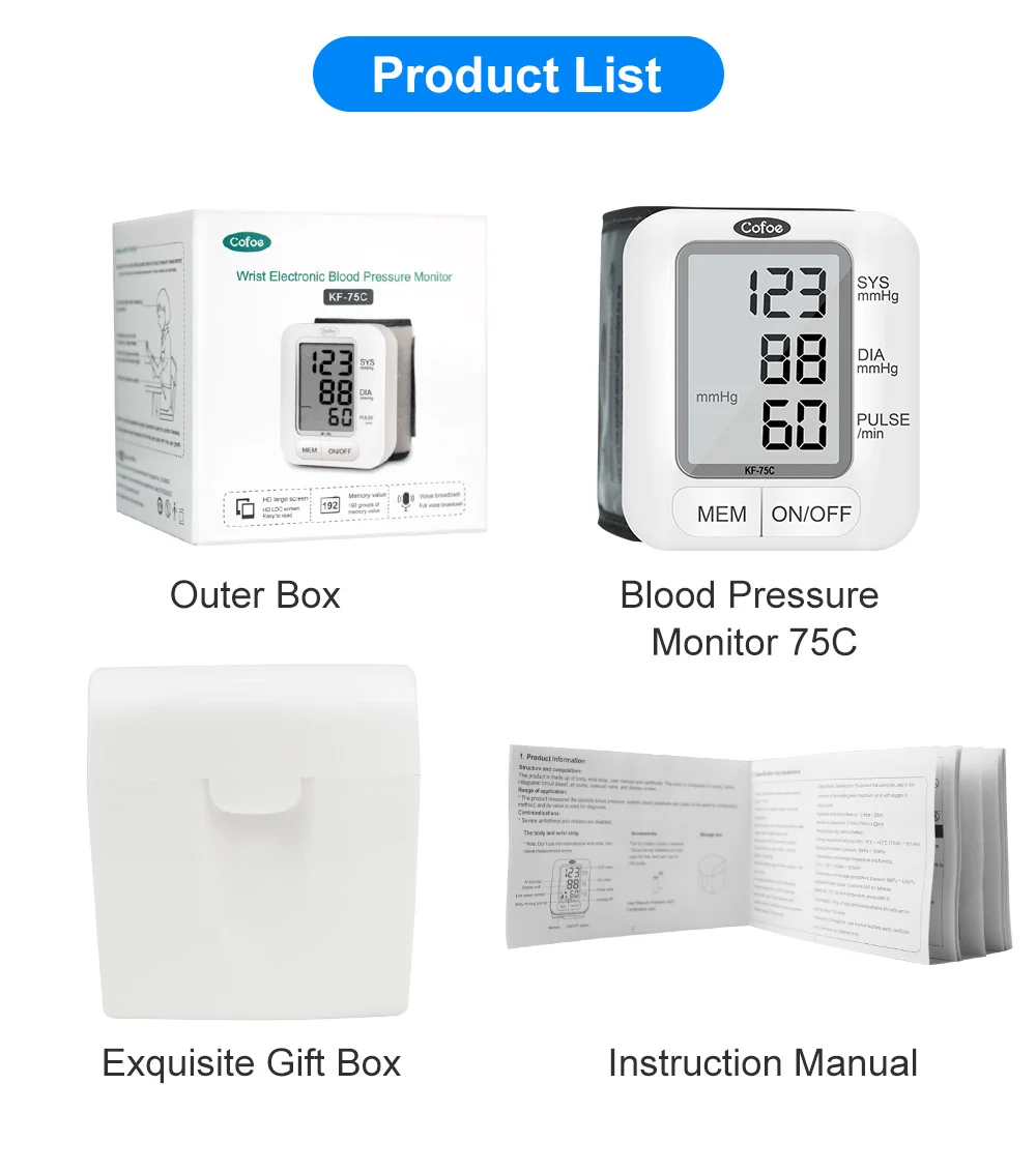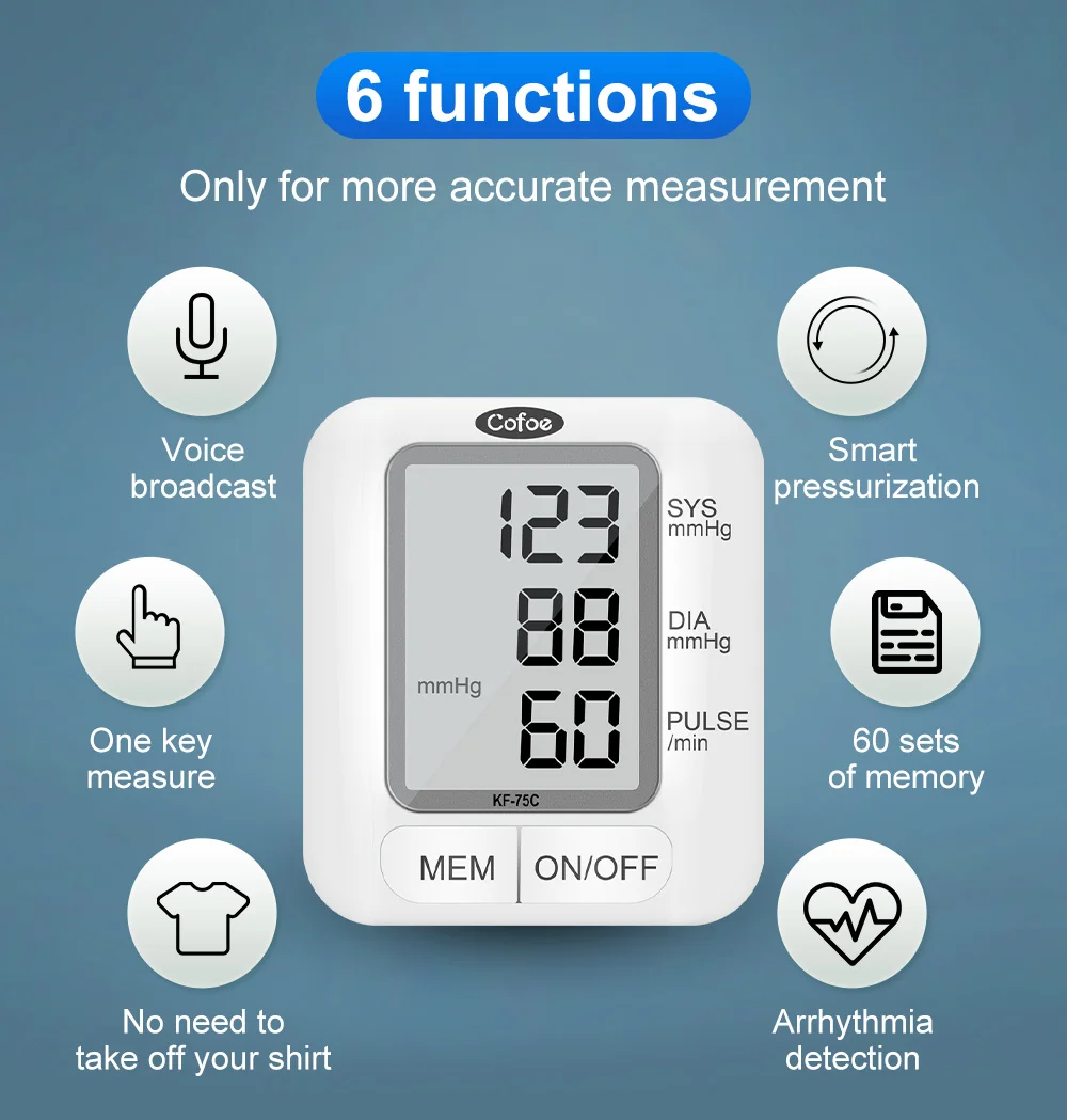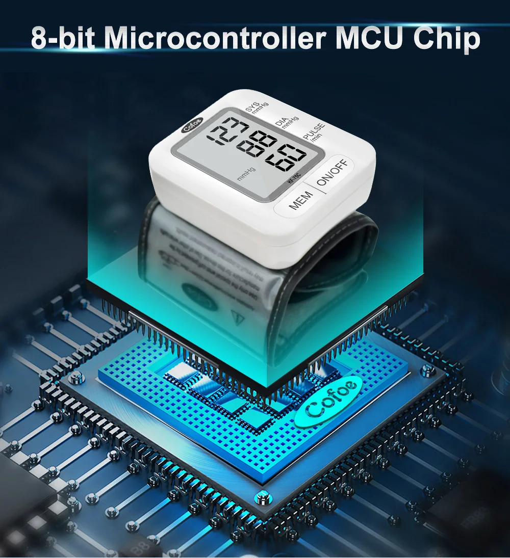 Cofoe Портативный наручные кровяное давление монитор Automatic Автоматические цифровые часы и пульс Mhttonitor KF-75C забота о здоровье