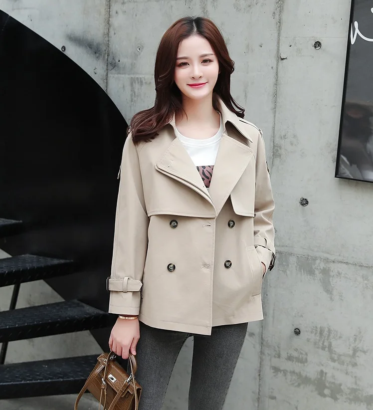 UHYTGF Женская короткая ветровка, Студенческая Повседневная демисезонная куртка, двубортная элегантная женская верхняя одежда больших размеров 695