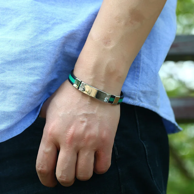 [Наименование]: браслет из нержавеющей стали [Материал]: силикон + нержавеющая сталь [Номер товара]: ST0045 [Вес]: 16 грамм [Размер]: ширина 1 см * длина 21 см [Упаковка]: прозрачный портфель OPP
