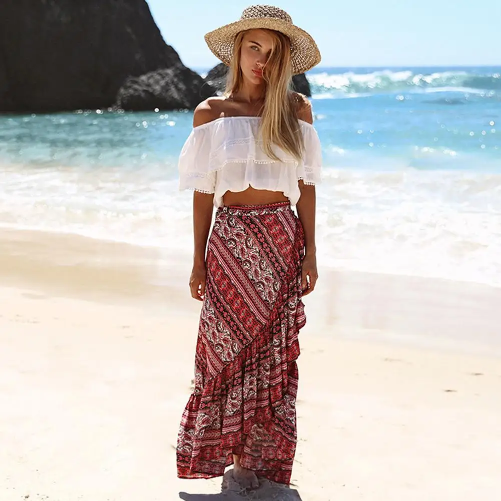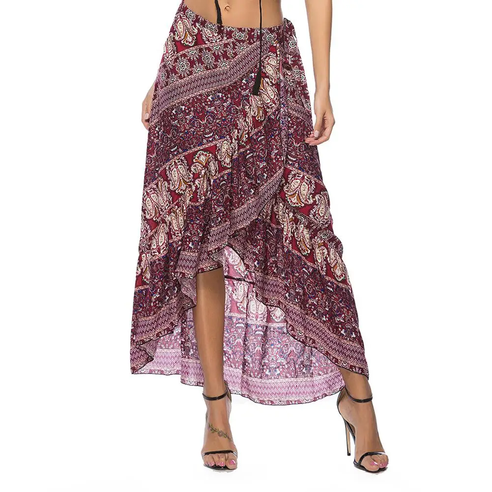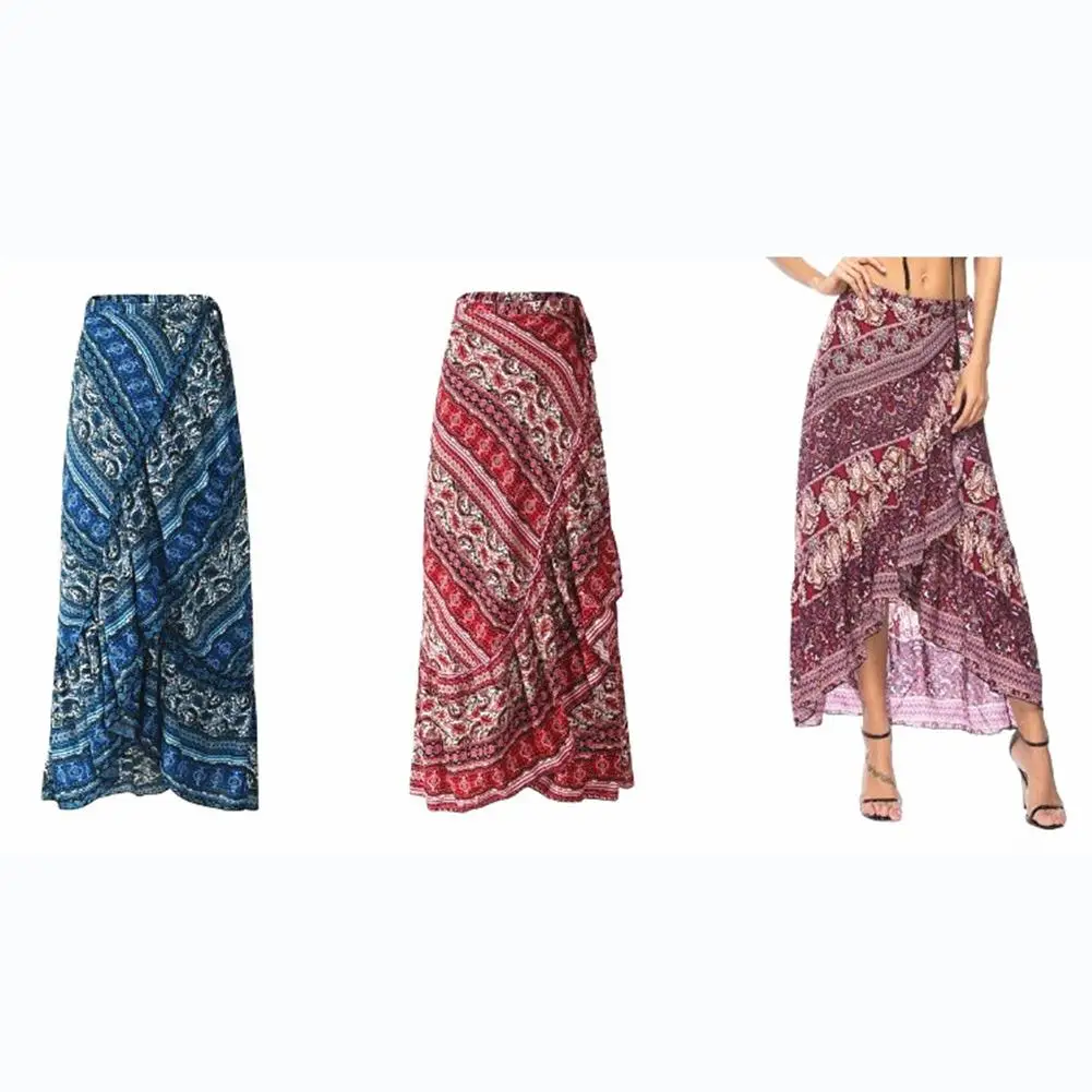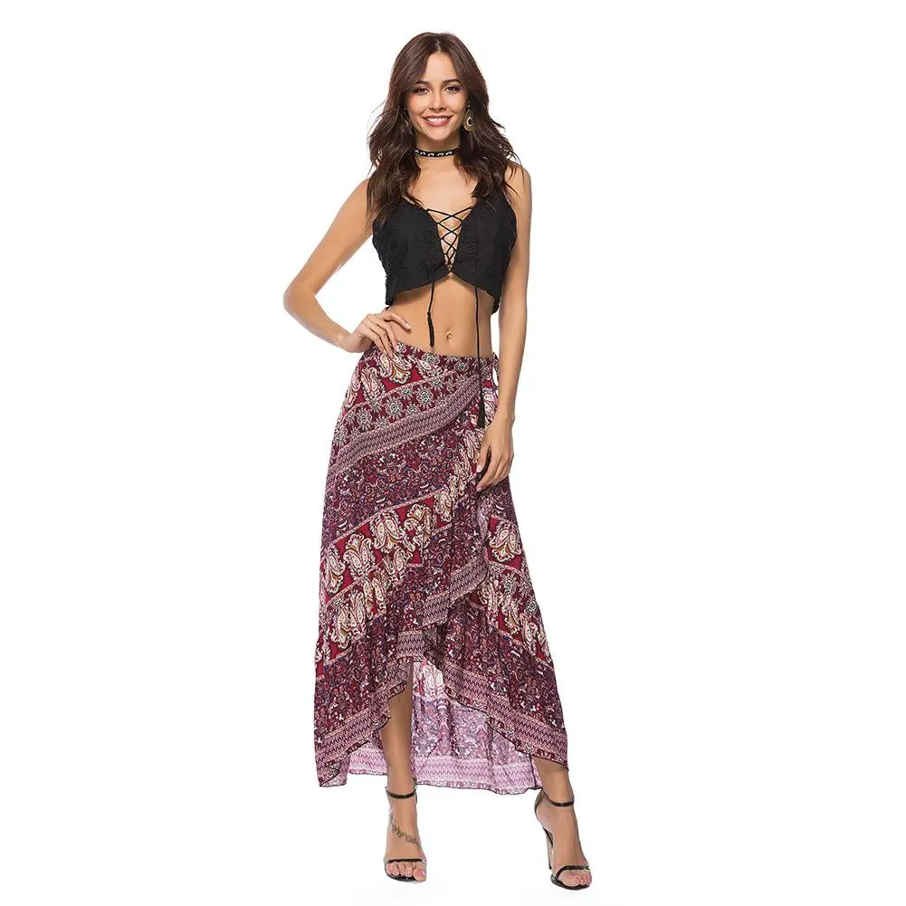 DSstyles женская национальная ветровая длинная юбка с принтом в богемном стиле, юбка для отдыха