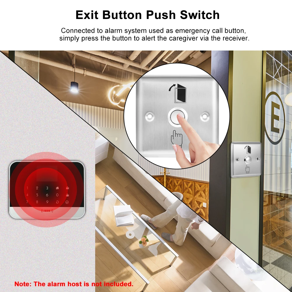 * Подключен к системе сигнализации, используемой в качестве кнопки экстренного вызова, просто нажмите кнопку, чтобы уведомить работника по уходу через приемник.