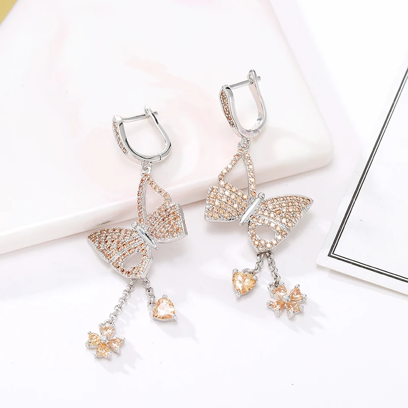 Серьги из розового золота, ювелирные изделия, свинг, Золотые серьги для свадьбы, невесты, золотые серьги-гвоздики, кристалл, циркон, бахрома, модные женские вечерние украшения, большие серьги