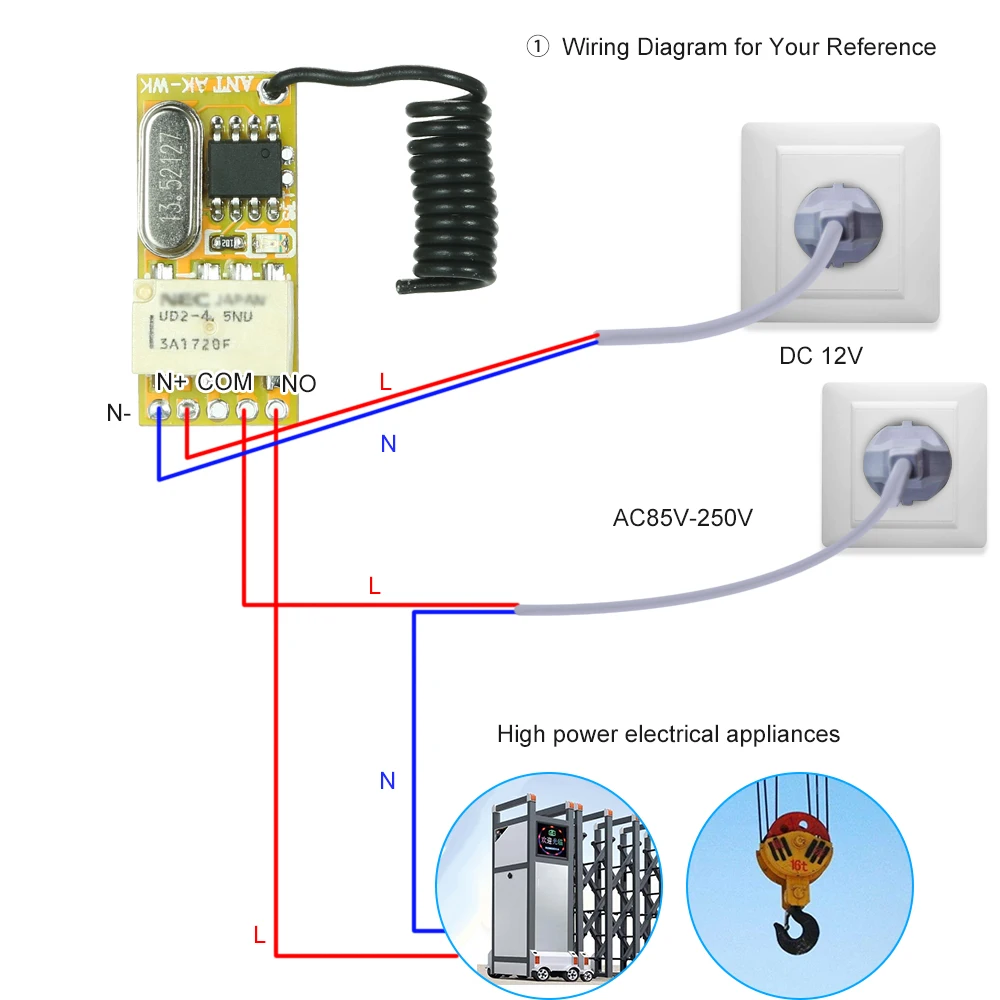 * Поддержка дистанционного управления до 16 шт. Он может подключаться к системе контроля доступа, двери гаража, светильник, электрический занавес, бытовая техника, управление двигателем, система безопасности и т. д. Чтобы он мог дистанционно разблокировать дверь, закрыть светильник, открыть или закрыть занавеску и т. д.