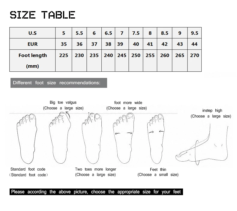 2. Пожалуйста, выбирайте размер ЕВРО с учетом длины ступни.