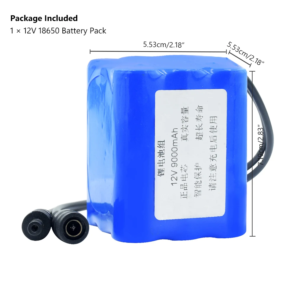 12 В 9*18650 ячеек группа литиевых батарей с 5,5x2,1 мм разъем постоянного тока.
