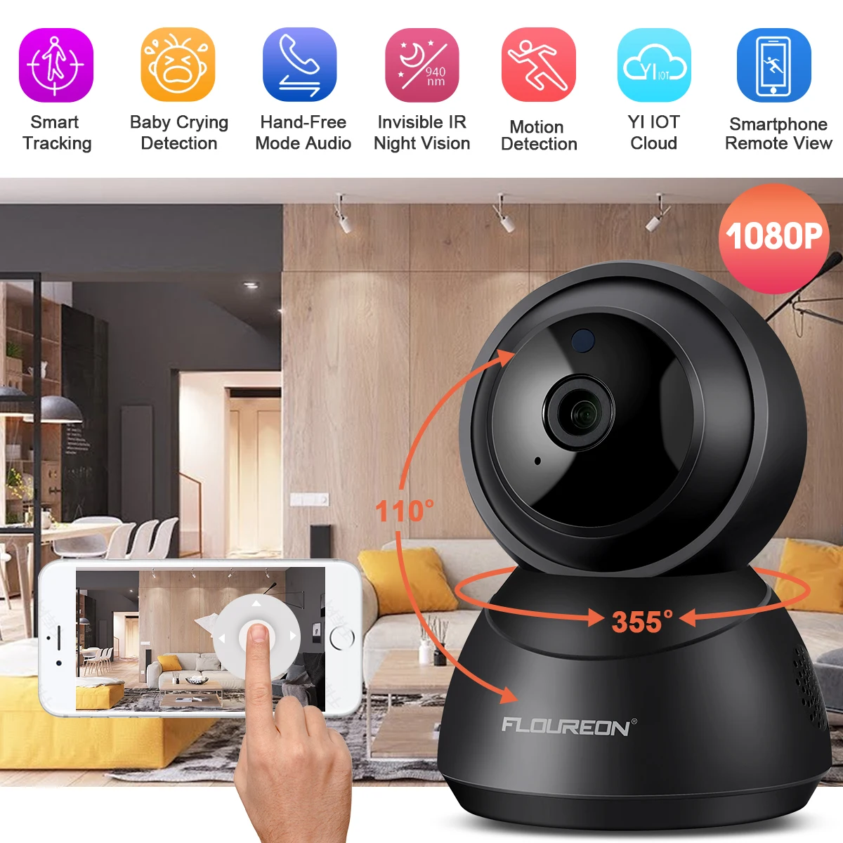 LЗапечатлейте каждый угол в высокой четкости: Поддерживаемое разрешение 1080 P. Панорамирование 355 ° по горизонтали и 110 ° по вертикали, чтобы запечатлеть качественные изображения и видео практически под каждым углом вашей гостиной, спальни, кухни и т. Д.