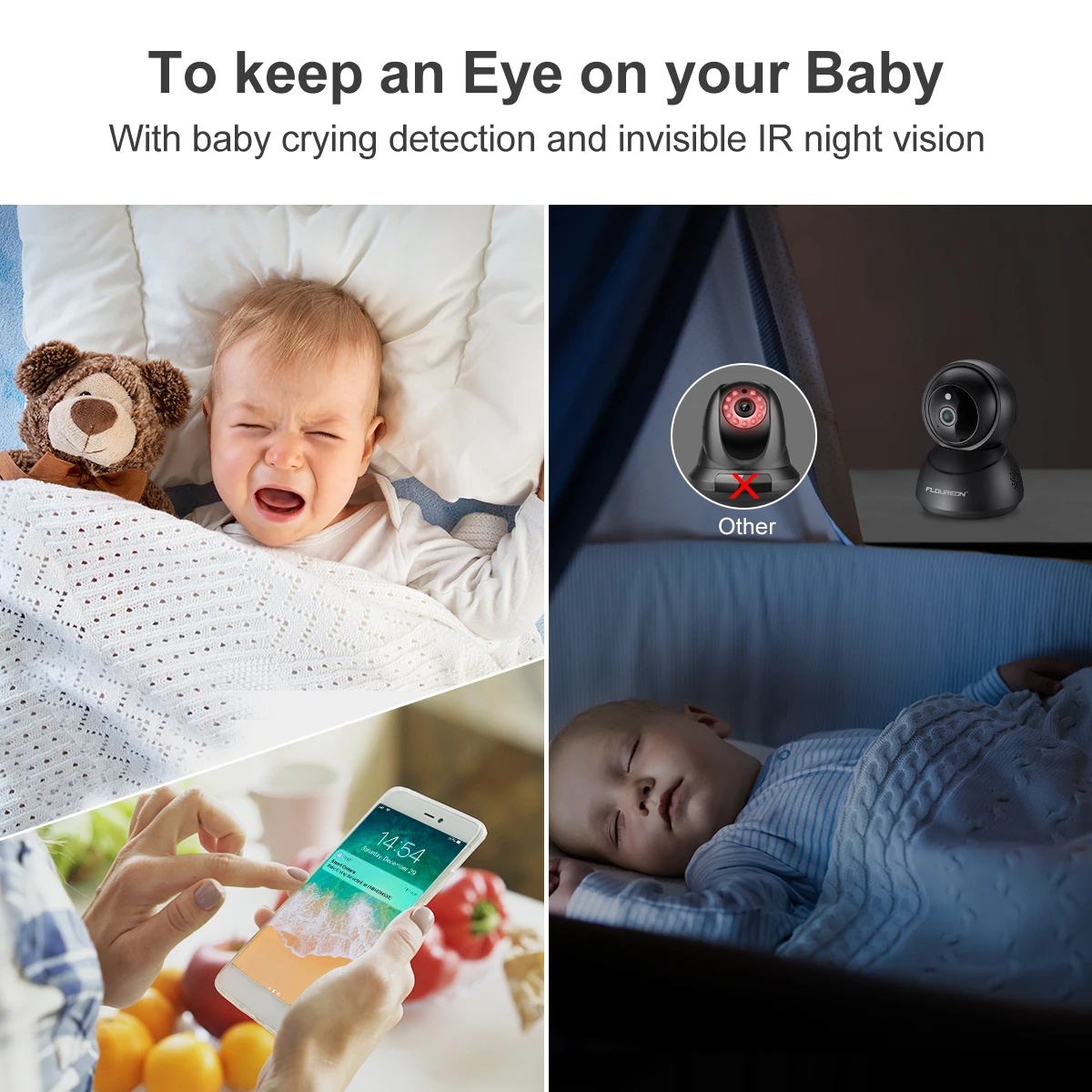 LНочное видение: инфракрасные светодиодные лампы 940nm. Диапазон 8-10 м. Невидимый, чтобы не мешать вашему ребенку или питомцу или привлекать нежелательное внимание.