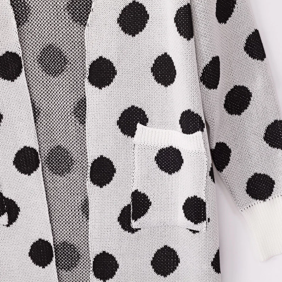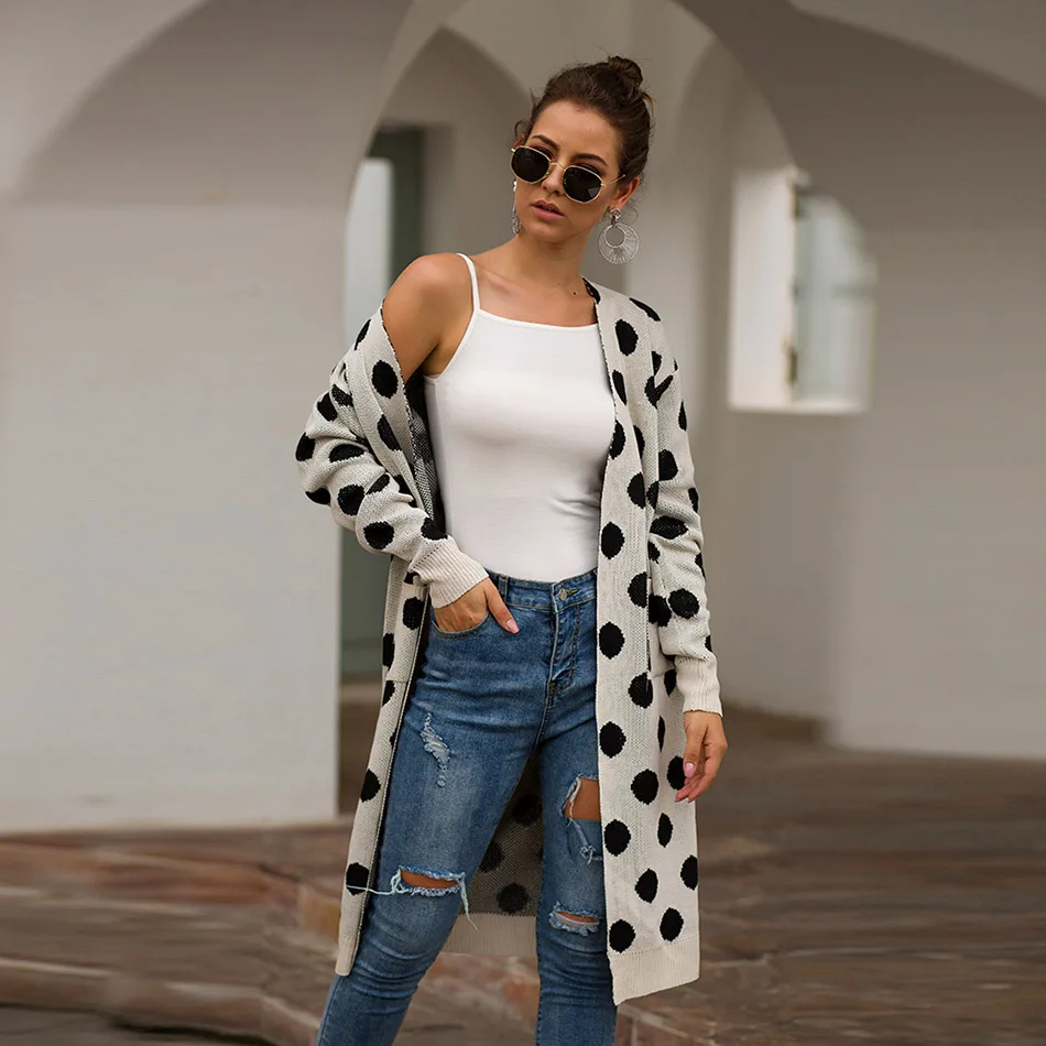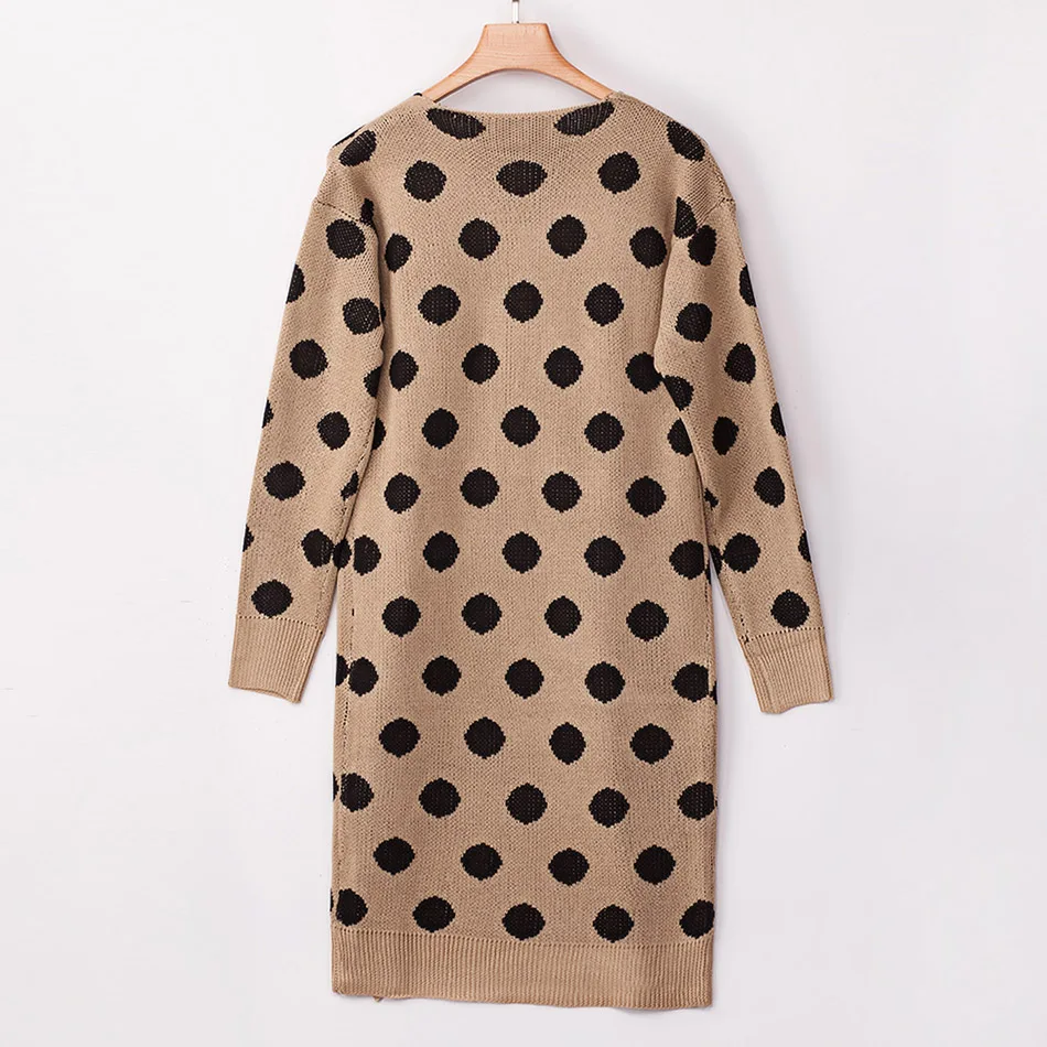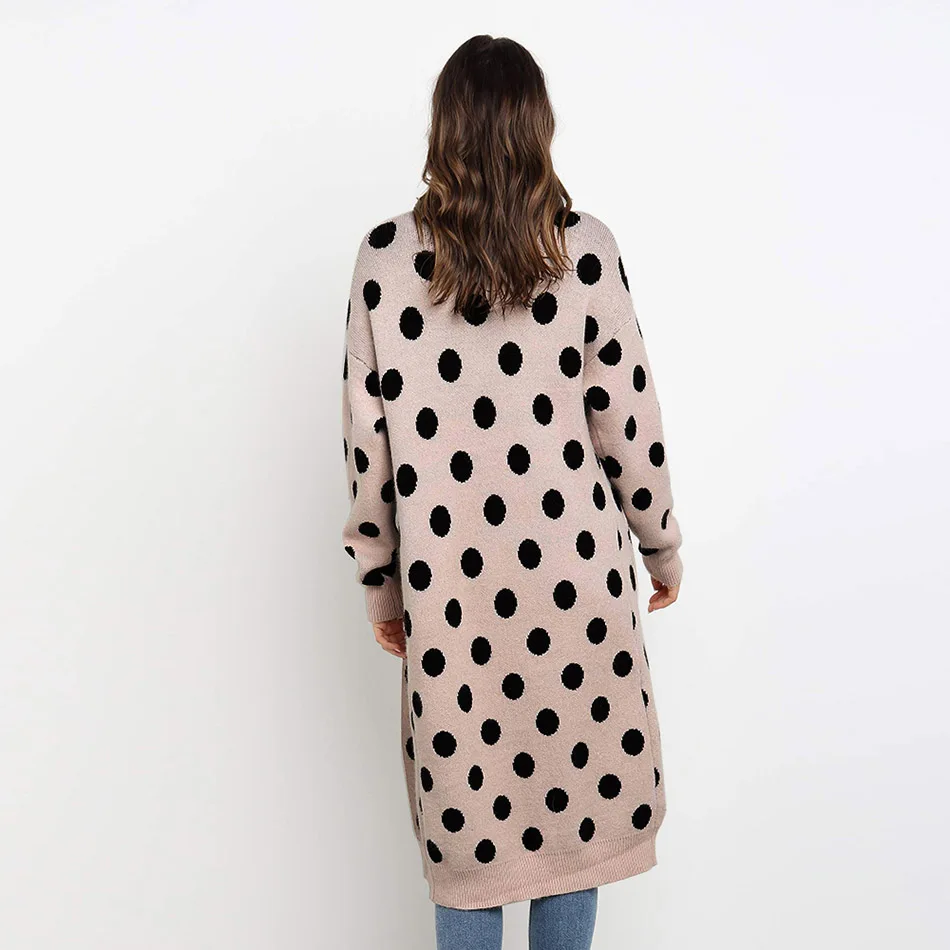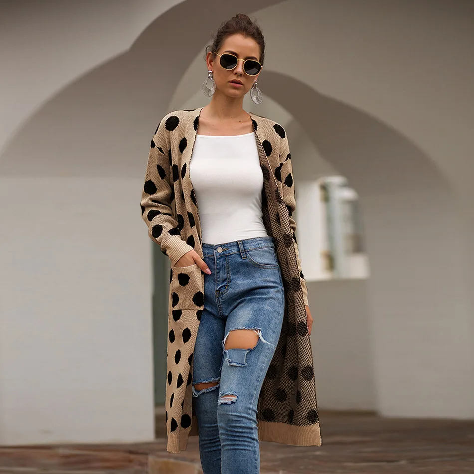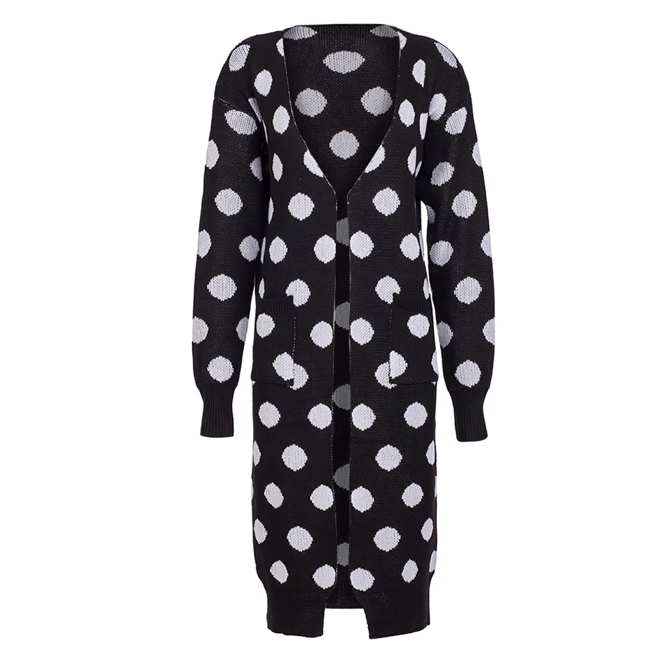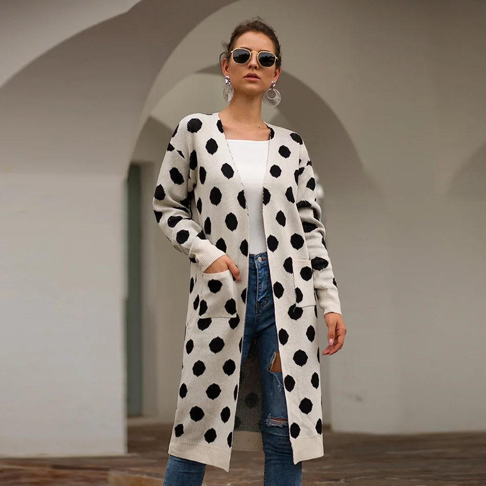 Fashion Knitted Dot Long Cardigan Women Pocket Plus Size Cardigan Mujer Overcoat Streetwear Autumn Blusas De Inverno Feminina