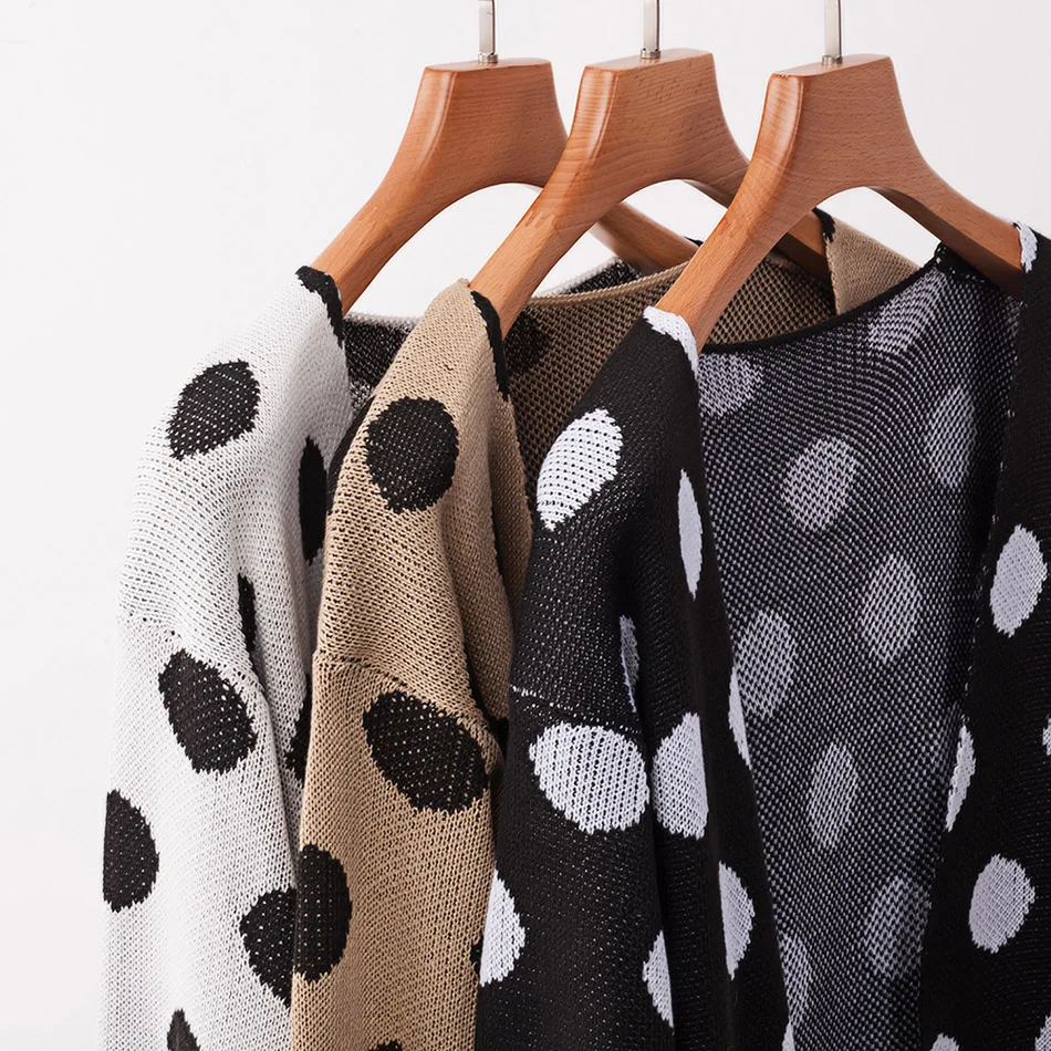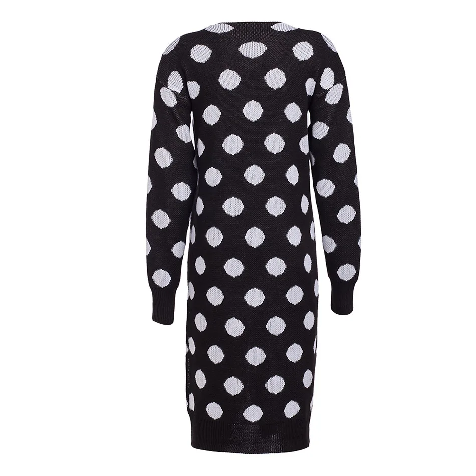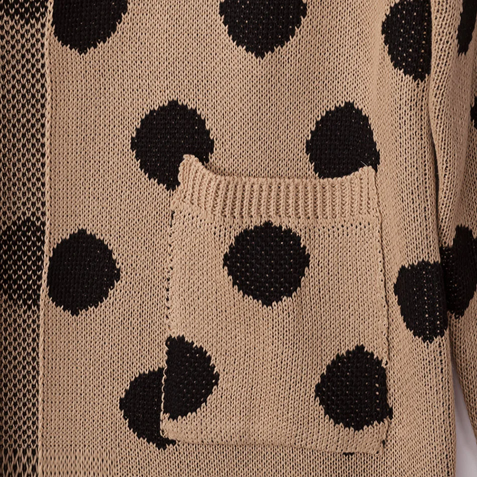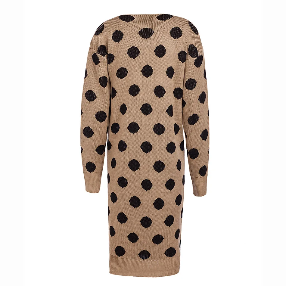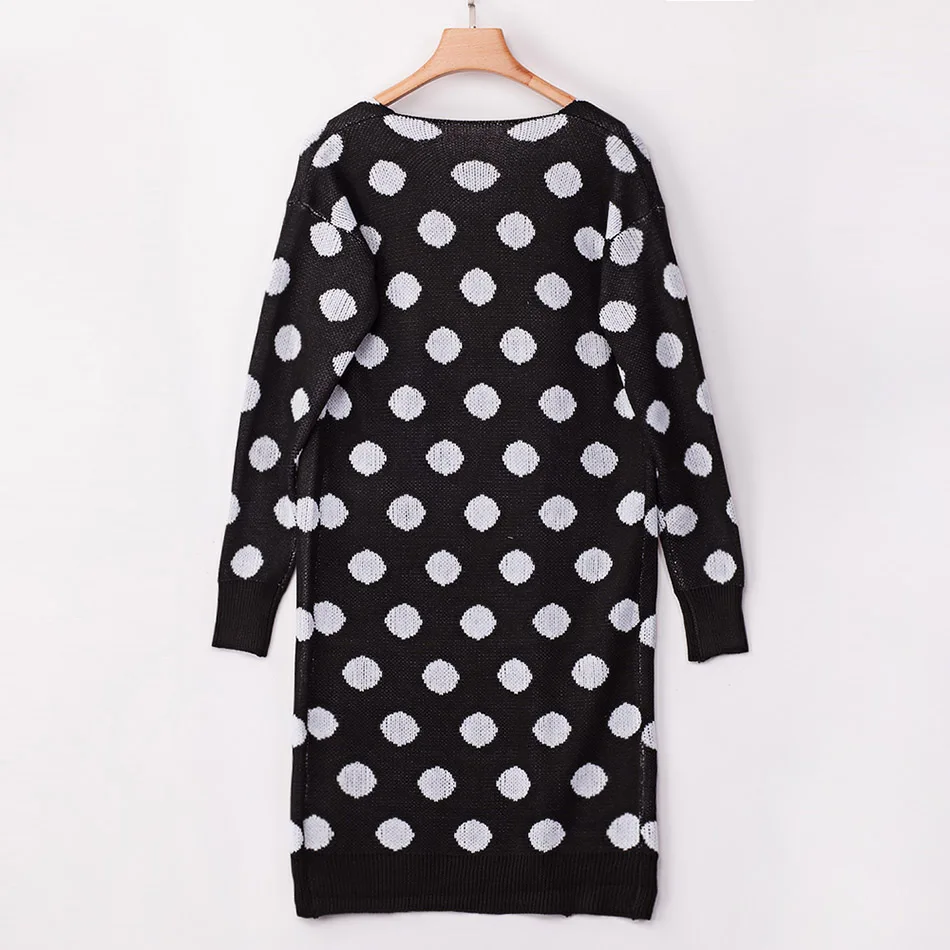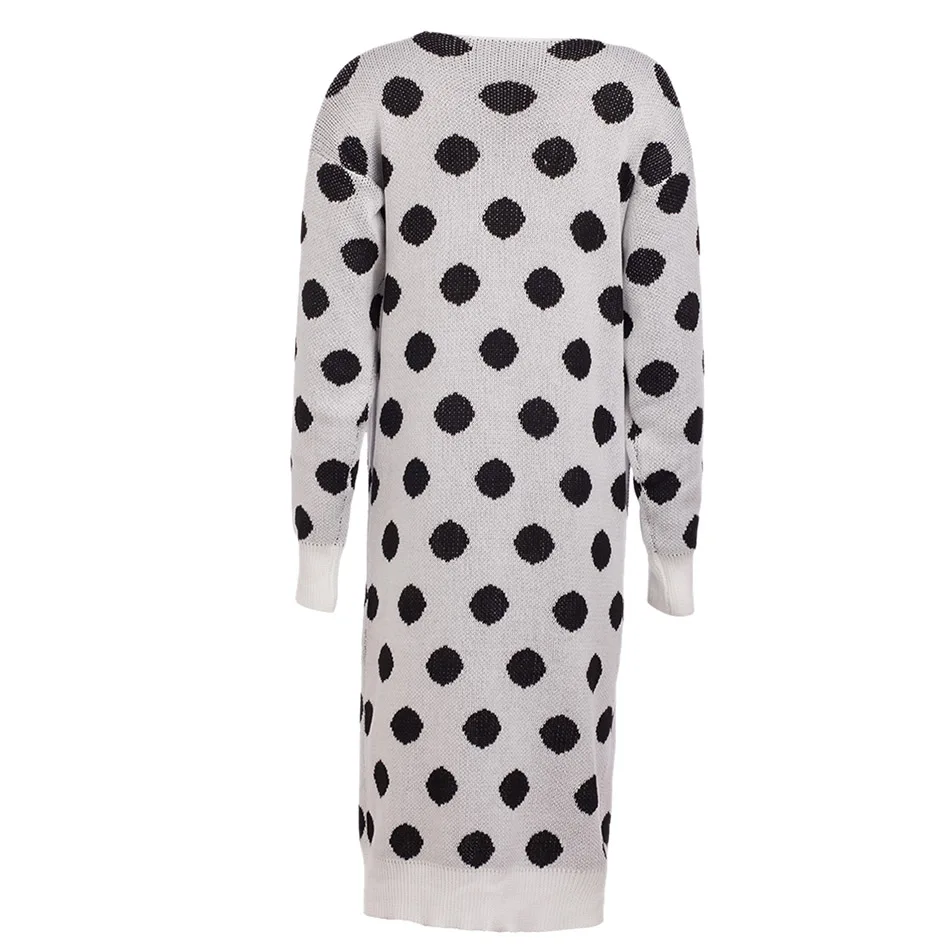 Fashion Knitted Dot Long Cardigan Women Pocket Plus Size Cardigan Mujer Overcoat Streetwear Autumn Blusas De Inverno Feminina