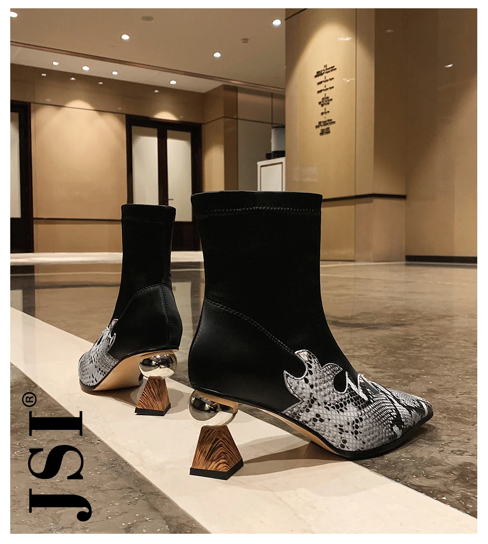 JSI/модные женские ботинки до середины икры без шнуровки ботинки на квадратном каблуке с острым носком женская обувь ручной работы из натуральной кожи на высоком каблуке JO294