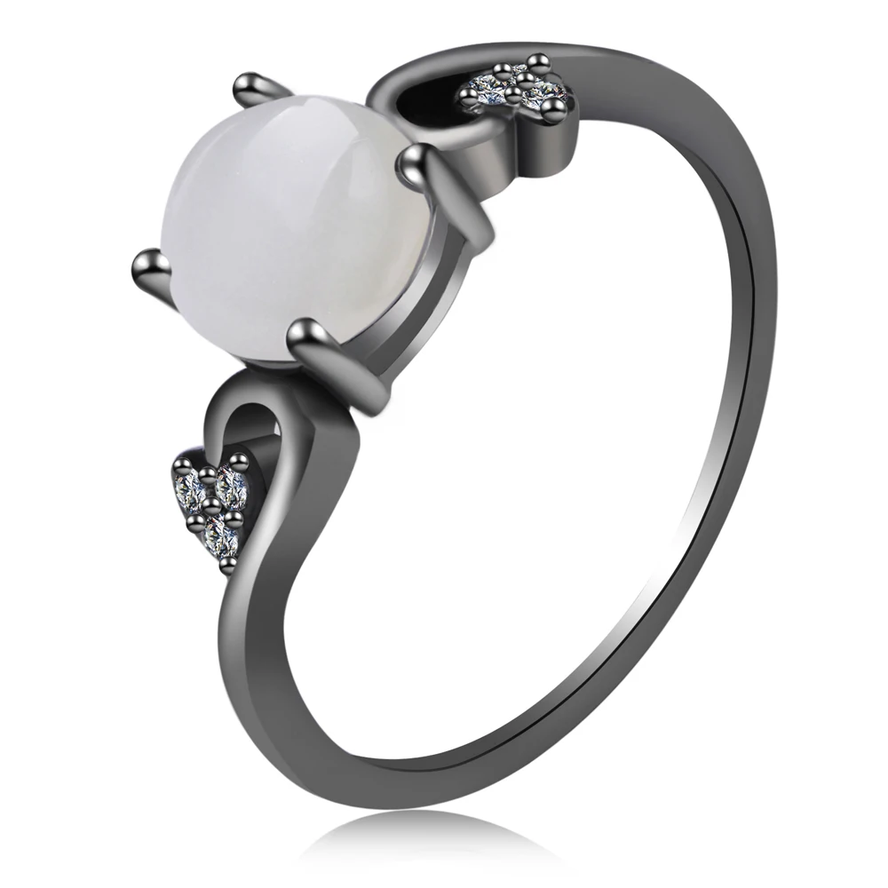 Черный, белый цвет, кольца для женщин, синтетический, Круглый, огненный опал, свадебный аксессуар для помолвки, лучший подарок