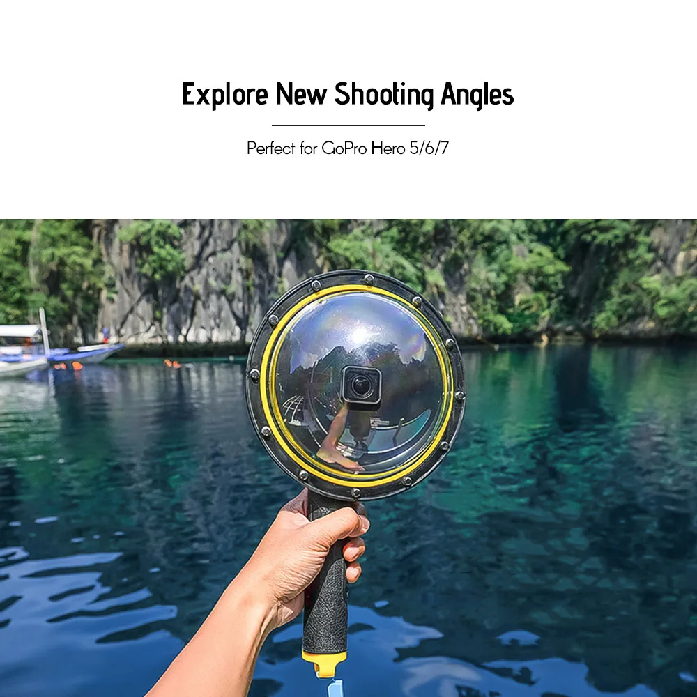 С плавающей рукояткой, чтобы предотвратить погружение камеры; Пистолетный триггер для управления кнопкой спуска затвора, не упустит возможности снимка; Защитный мешок, чтобы предотвратить купольный порт объектива от царапин.