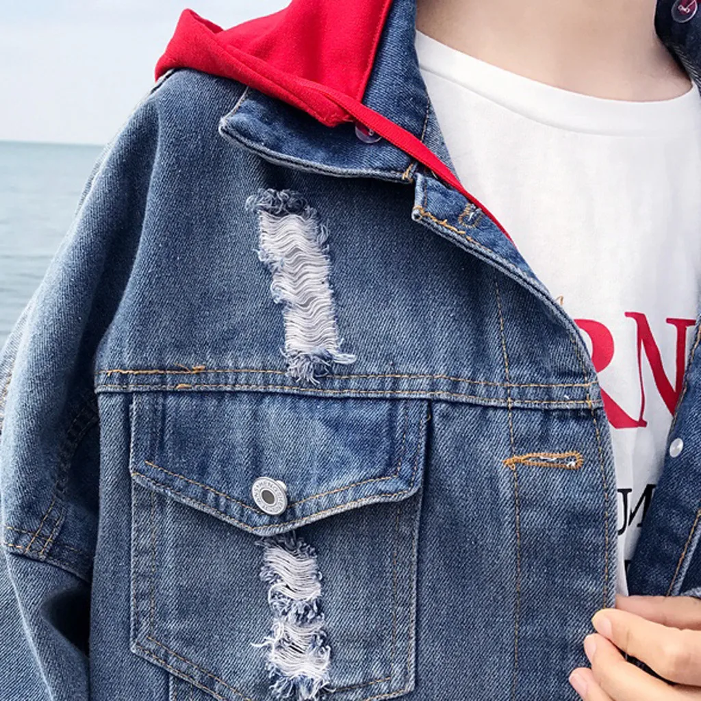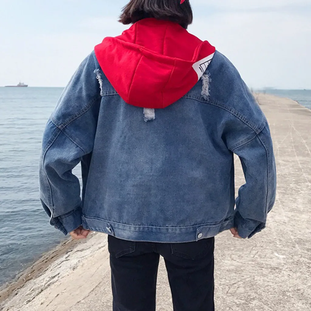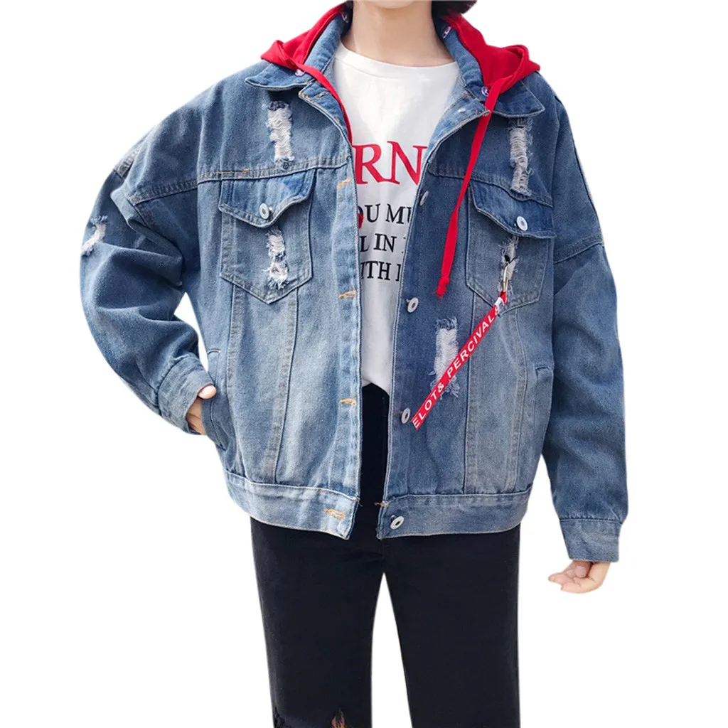 Женское свободное джинсовое пальто с длинным рукавом, ретро ковбойская джинсовая Повседневная куртка с капюшоном