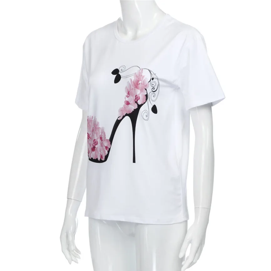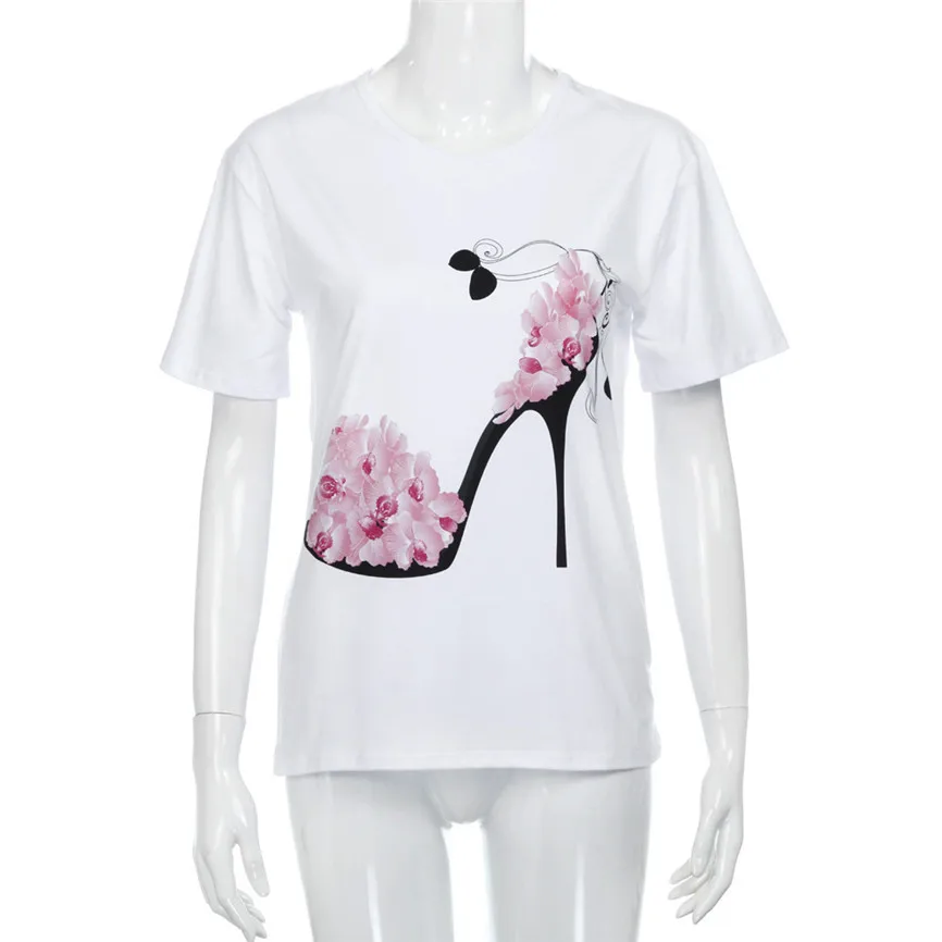 Женская Повседневная Свободная блузка с коротким рукавом, на высоком каблуке, с принтом