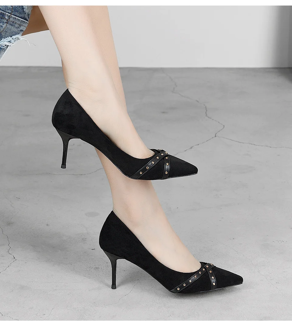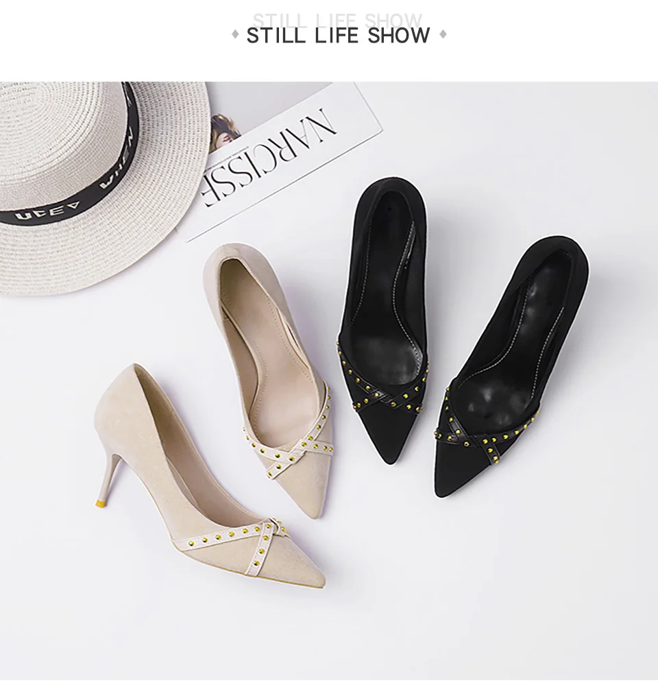 Женская обувь на высоком каблуке, удобная Свадебная обувь с острым носком, черные туфли на каблуке, весна-осень 2019