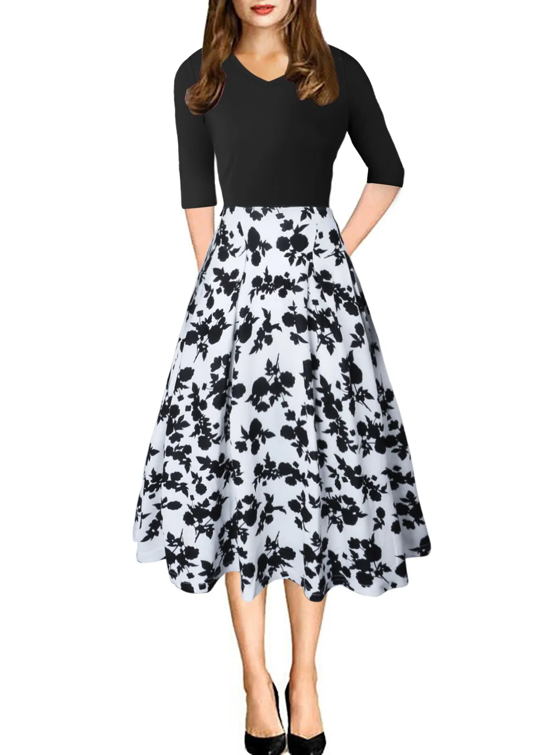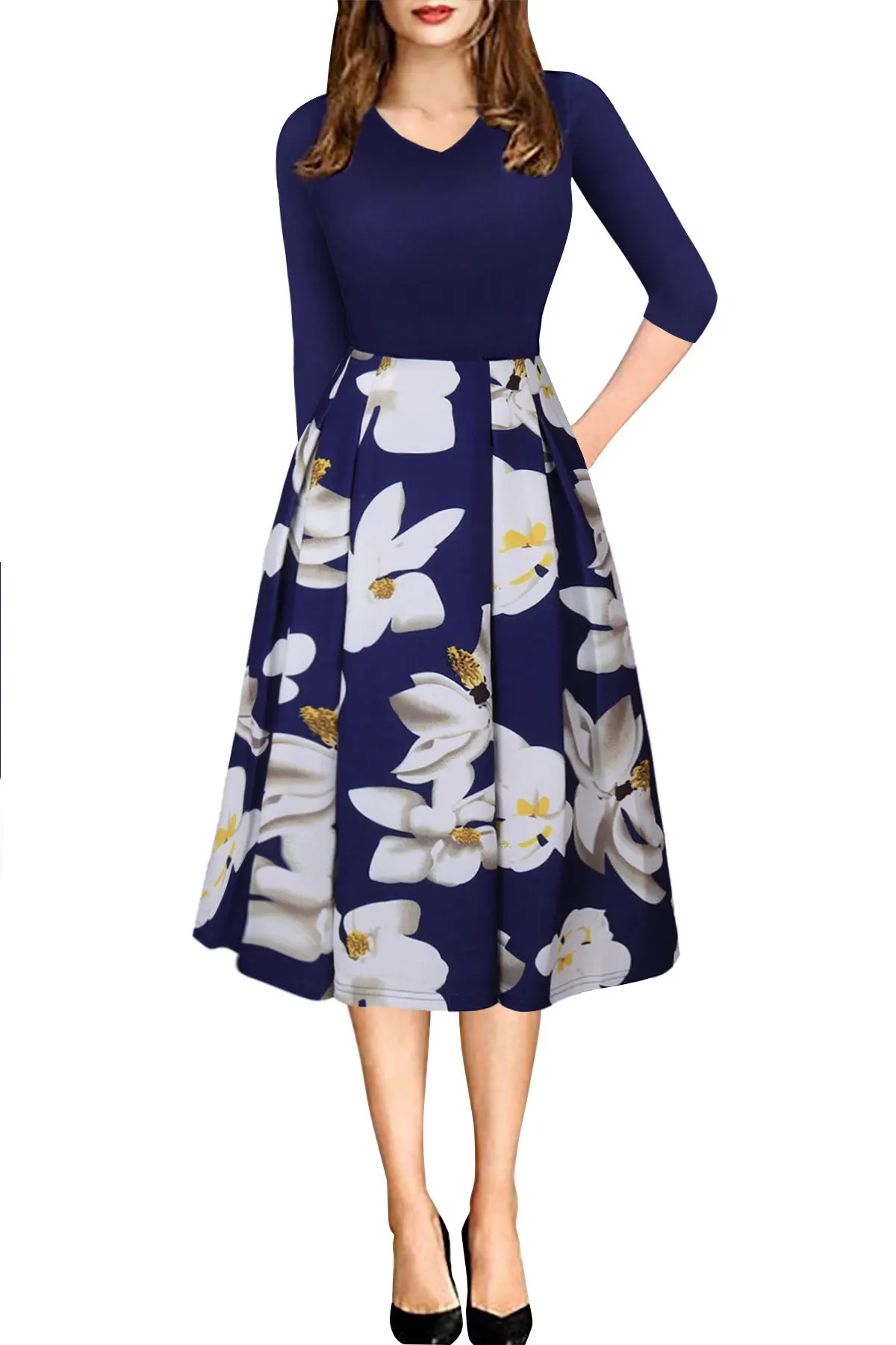 Дизайн: винтажное обтягивающее платье в стиле ретро с высокой талией 1950-х годов. V-образный воротник, цветочный узор внизу, карманы с обеих сторон Подходит для многих случаев, таких как рабочие, деловые, вечерние, Клубные, Коктейльные, на открытом воздухе, встречи выпускников, банкеты и так далее. Платье нарядное его самостоятельно. Это просто, но элегантно и стильно. Платье действительно милое и женственное. Если вы немного консервативный тип человека, поэтому платье, как это, всегда подходит для вас. Длины юбки достаточно, не слишком шорты и не слишком длинные. Ткань очень мягкая и плотная. Его очень хорошо сделано и качество высокое. Вы точно можете носить это в особых случаях