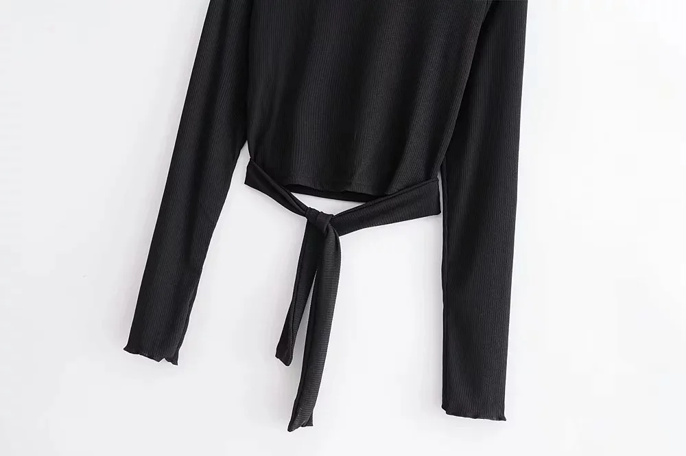 Вязаный свитер с открытой спиной и бантом, Женский Повседневный пуловер с высоким воротником, Женский Осенний вязаный джемпер 2019, зимний женский свитер-пуловер с открытой спиной и бантом, Женский Повседневный пуловер с высоким воротником, Женский вязаный джемпер 2019, зимний женский свитер-пуловер