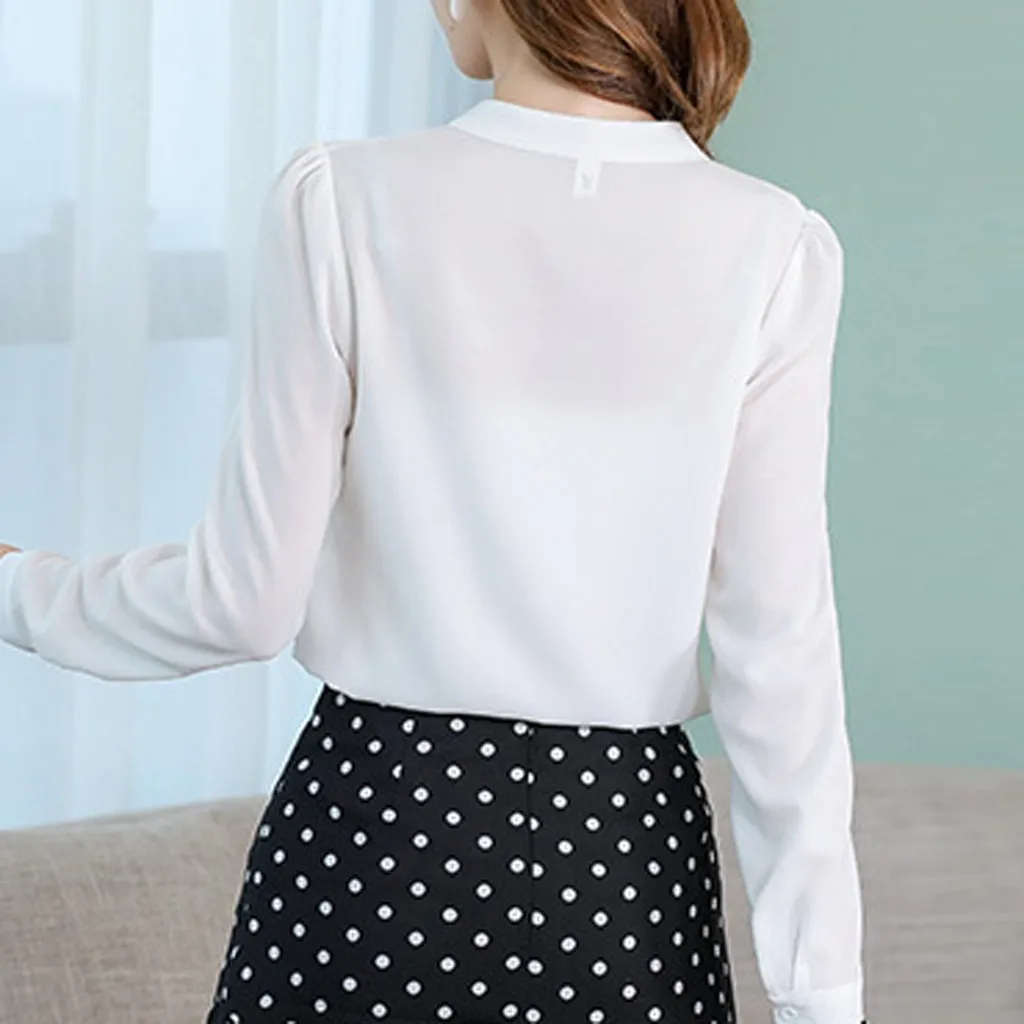 Осень 2019, Женская белая рубашка, рубашки с длинным рукавом, однотонная шифоновая блузка, футболка, топ 7,31
