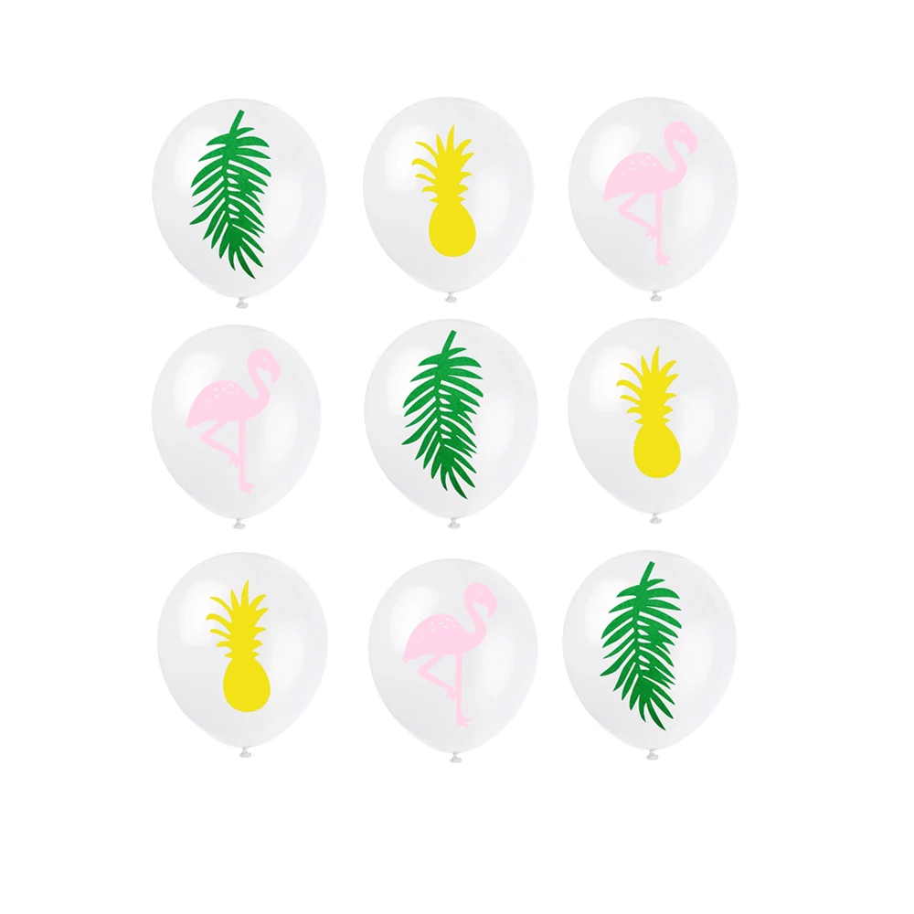 10 balloons include: 4 18 balloons + 3 pineapples / flamingos / broadleaf balloons + 3 solid color balloons''